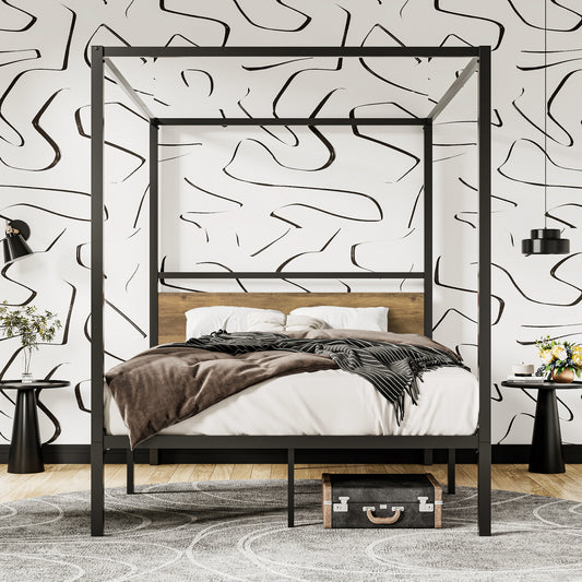 Canopy Bed with Wooden Headboard, Sturdy Posters, Noise Free, No Box Spring Needed