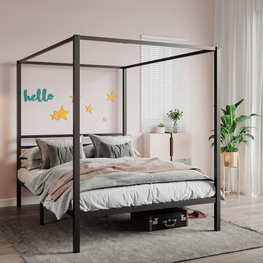 Metal Canopy Platform Bed Frame, No Box Spring Needed, Noise Free
