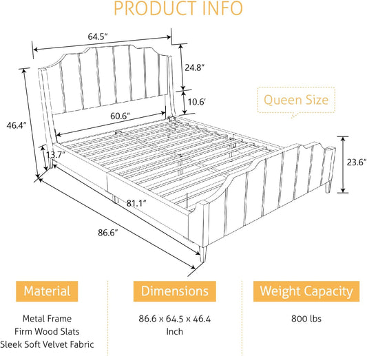 Modern Curved Wood Bed Frame with Upholstered Wingback Headboard