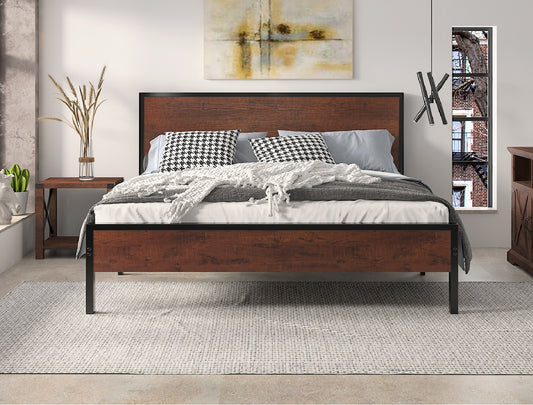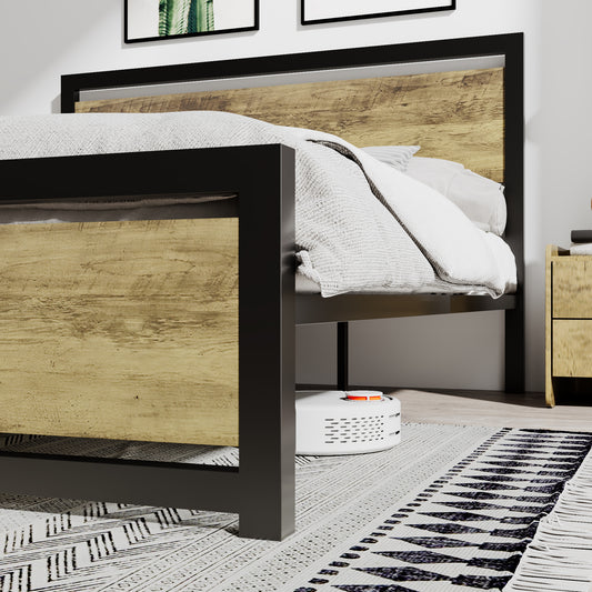 Metal Platform Bed Frame with Wood Headboard and Footboard