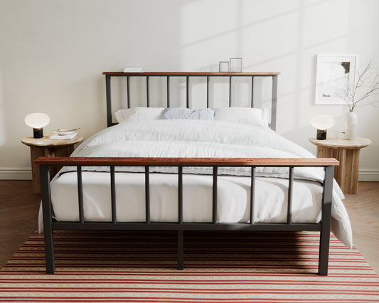 Metal Platform Bed with Modern Wooden Headboard & Footboard