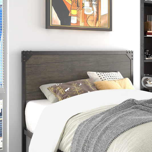 Metal Platform Bed Frame with Wood Headboard, Space Saving, No Box Spring Needed, Noise Free
