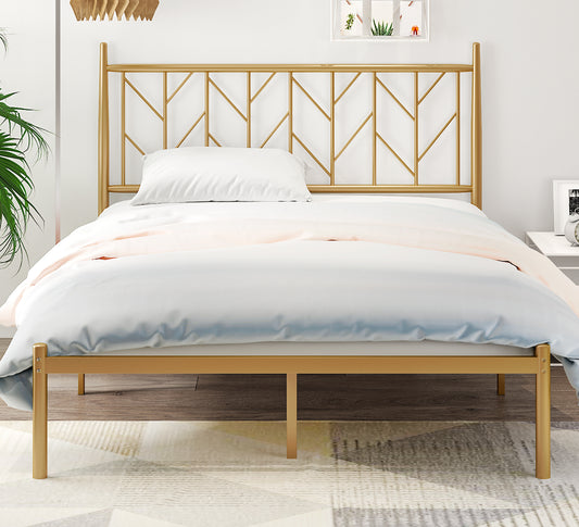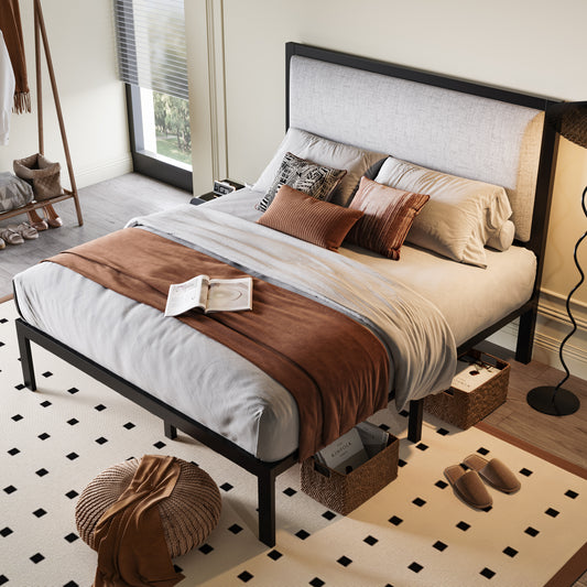Metal Bed Frame with Minimalist Upholstered Headboard