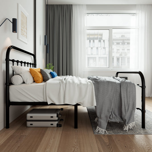 Metal Platform Bed Frame with Headboard and Footboard, Vintage Style Mattress Foundation