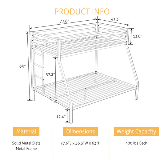Twin over Full Bunk Bed, Metal Bunk Beds with Stairs & Guardrail for Teen & Adults