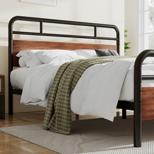 Metal Bed Frame with Wooden Headboard & Footboard,