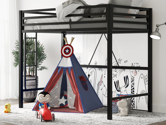 Metal Twin Loft Bed with Stairs & Safety Guardrail
