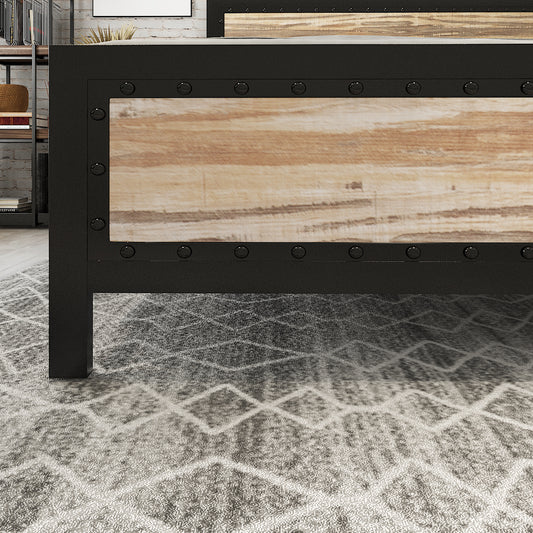 Metal Bed Frame with Rivet Wooden Headboard & Footboard
