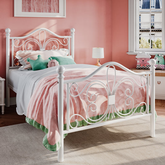 Sha Cerlin Metal Platform Bed Frame with Victorian Vintage Headboard & Footboard, Adult