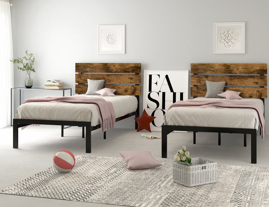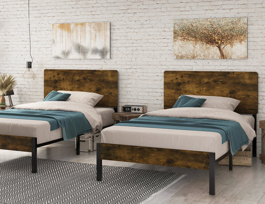 Platform Bed Frame with Wood headboard and Metal Slats/Rustic Country Style Mattress Foundation