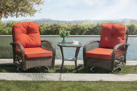 Outdoor Swivel Chairs with Side Table, Outdoor swivel rockers, 3 Piece Bistro Set with Swivel Chairs