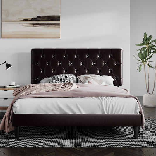 Upholstered Bed with Adjustable Diamond Stitched Button Tufted Headboard