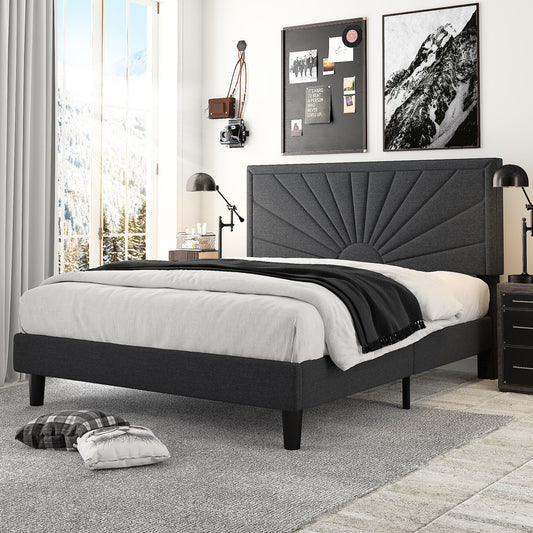 SHA CERLIN Grey Panel Platform Bed Frame with Adjustable Fabric Upholstered Headboard, Adult