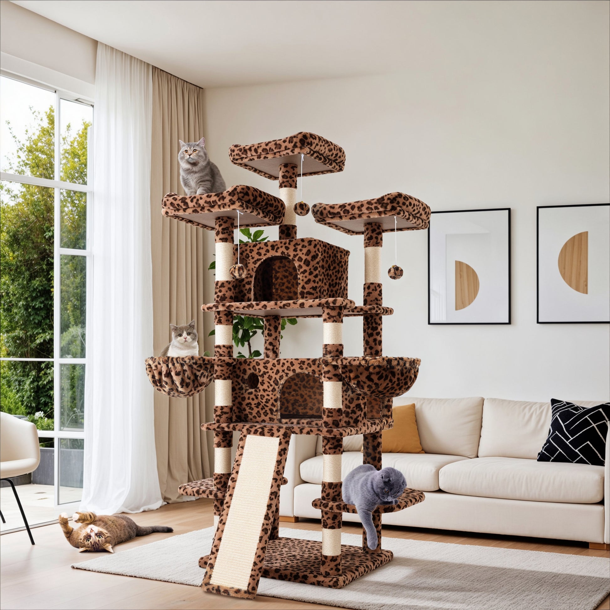 Sha Cerlin 68" X Large Cat Tree and Tower for Cats with Condo House, Sisal Scratching Board & Posts
