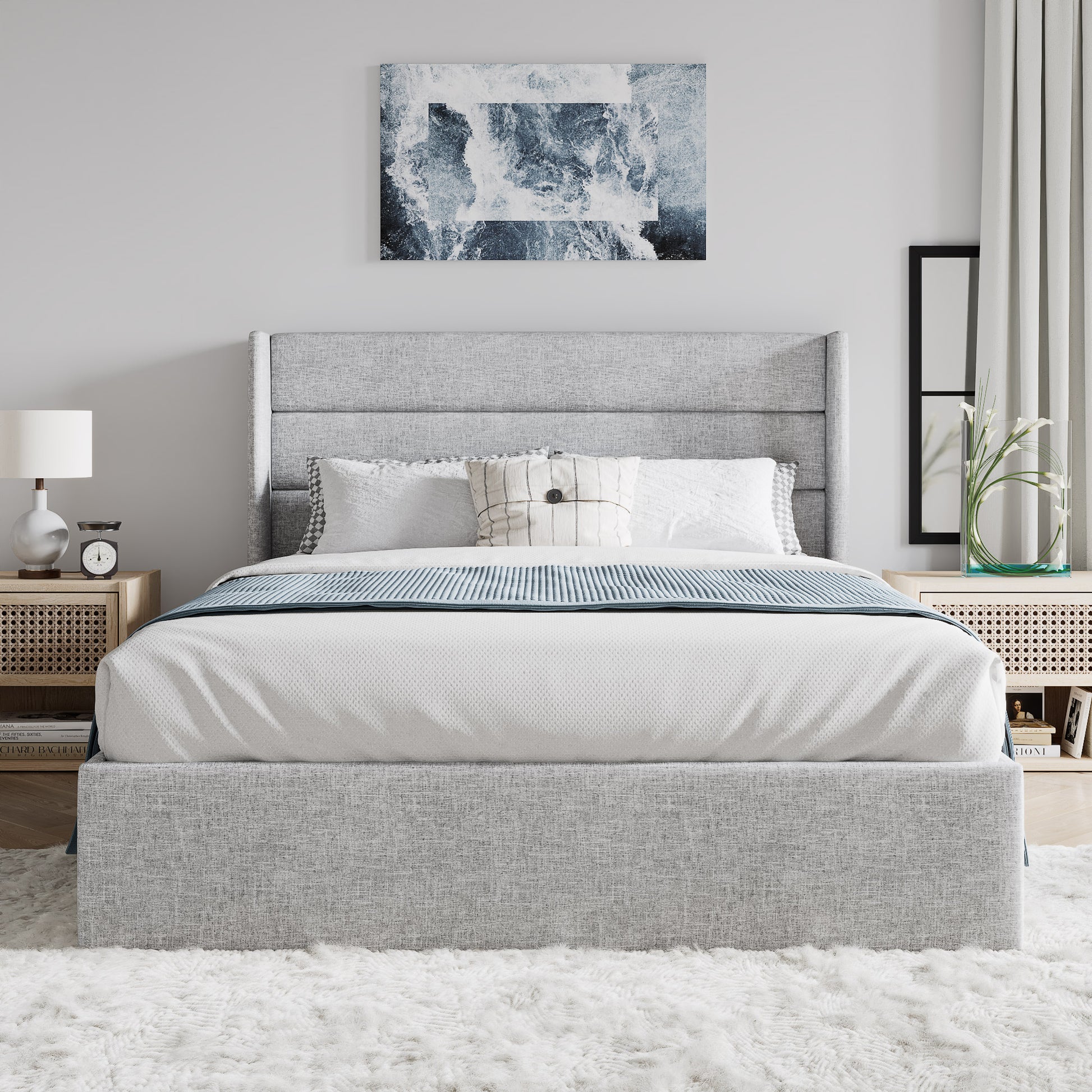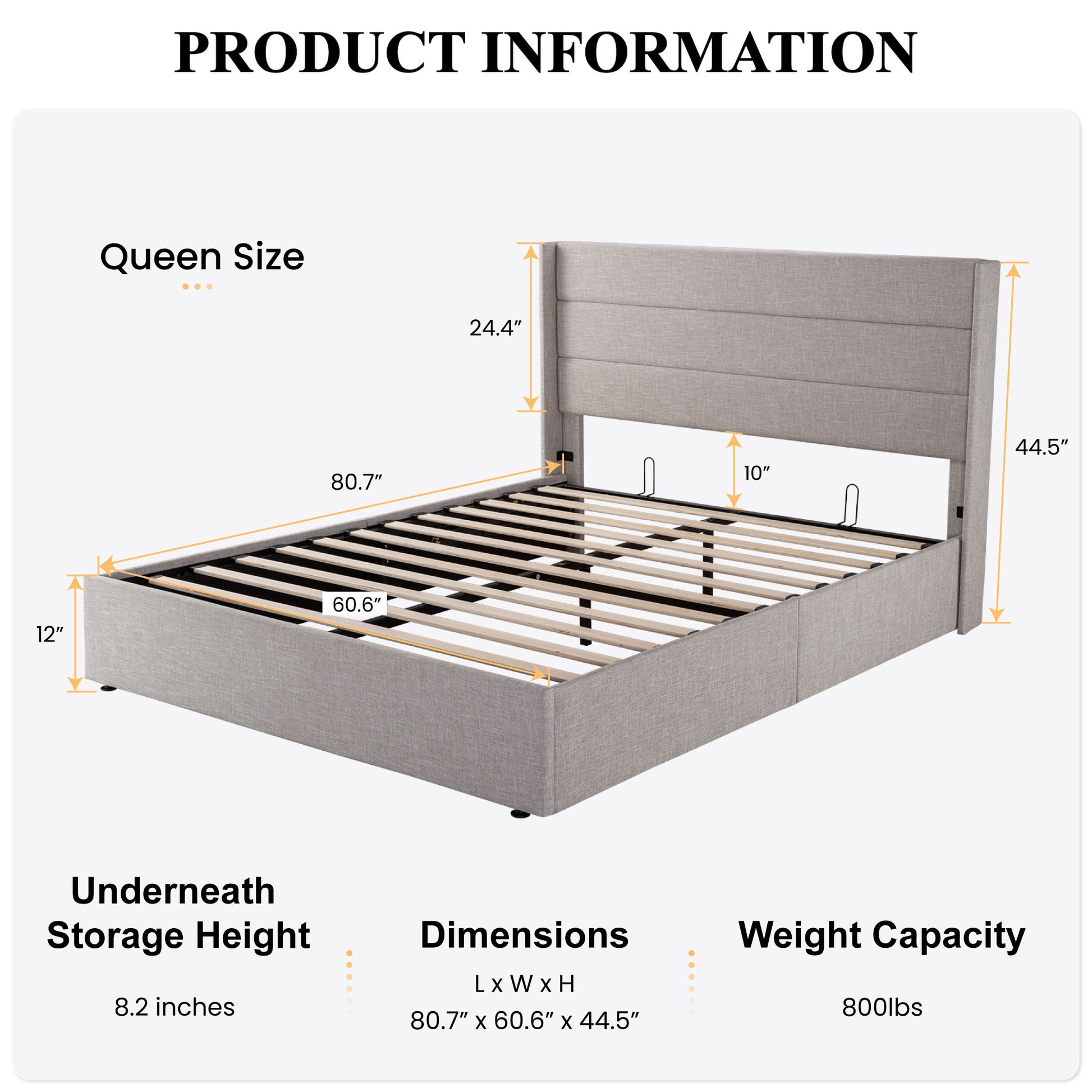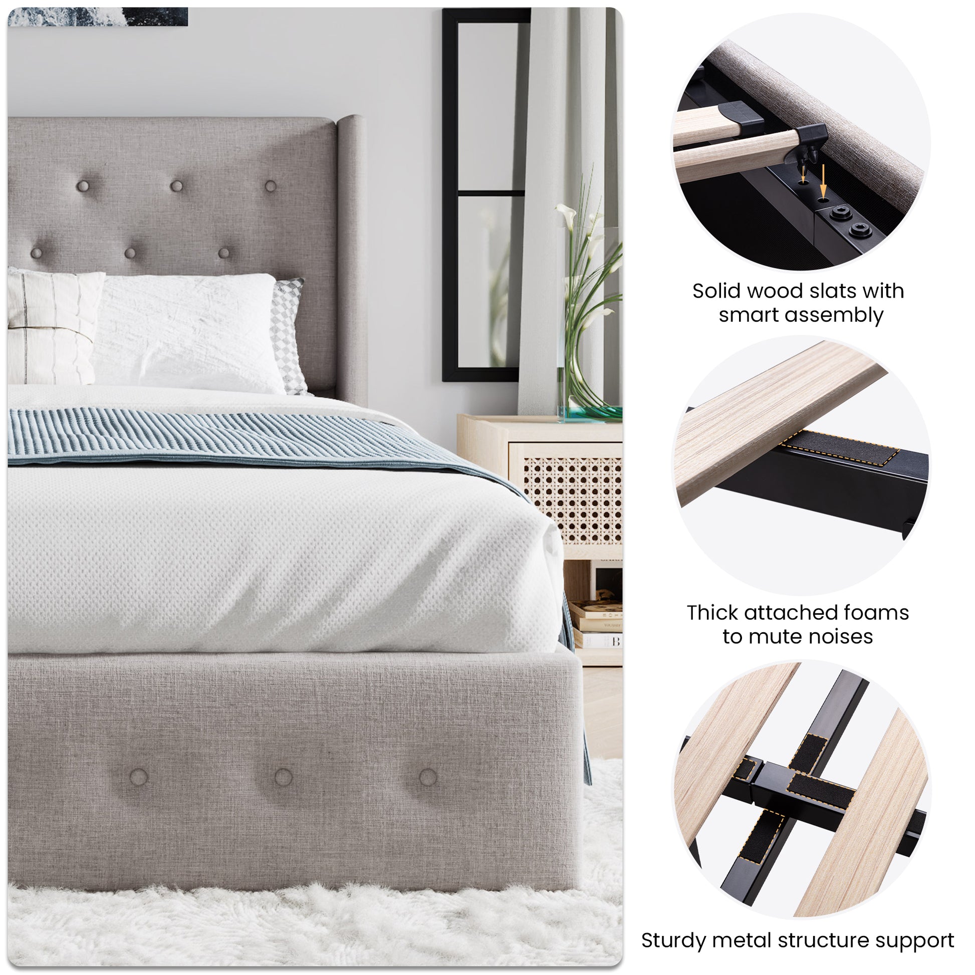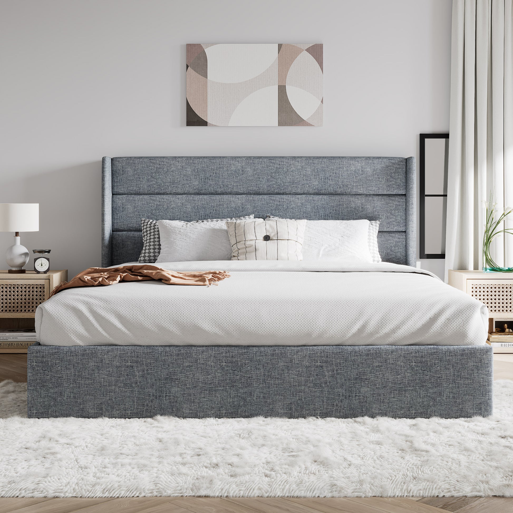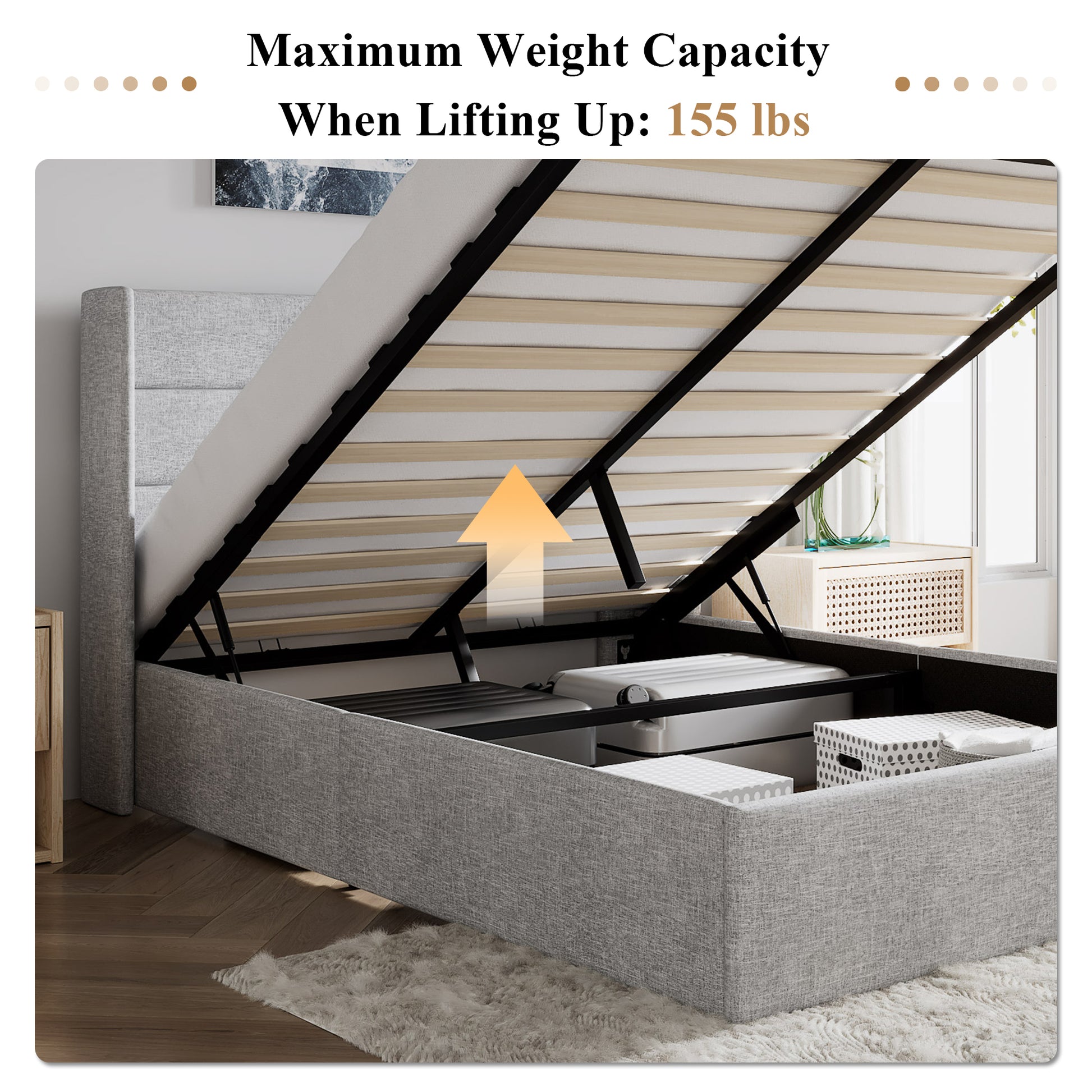 Upholstered Stoage Bed Frame with Lift Up Storage, Wingback Headboard Design