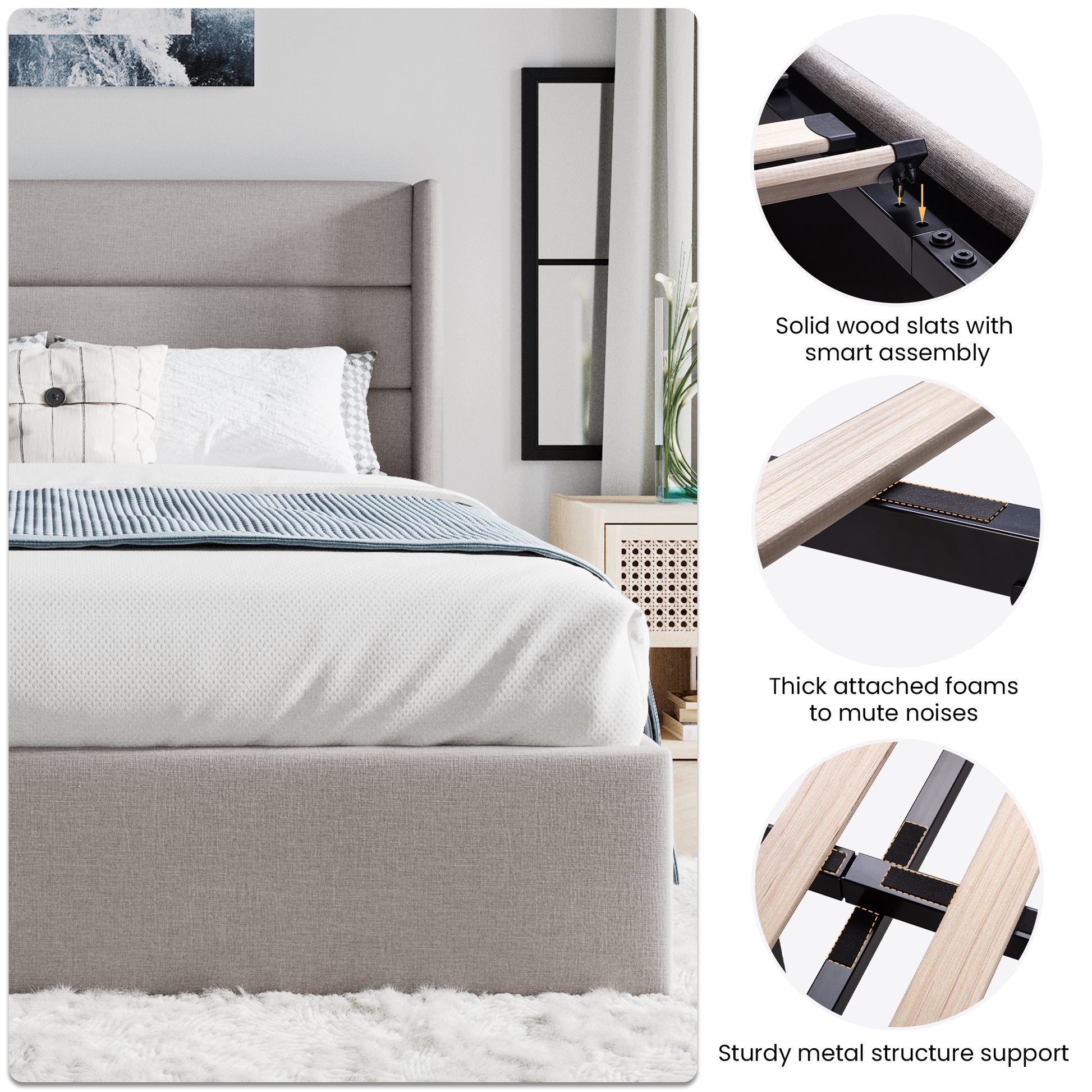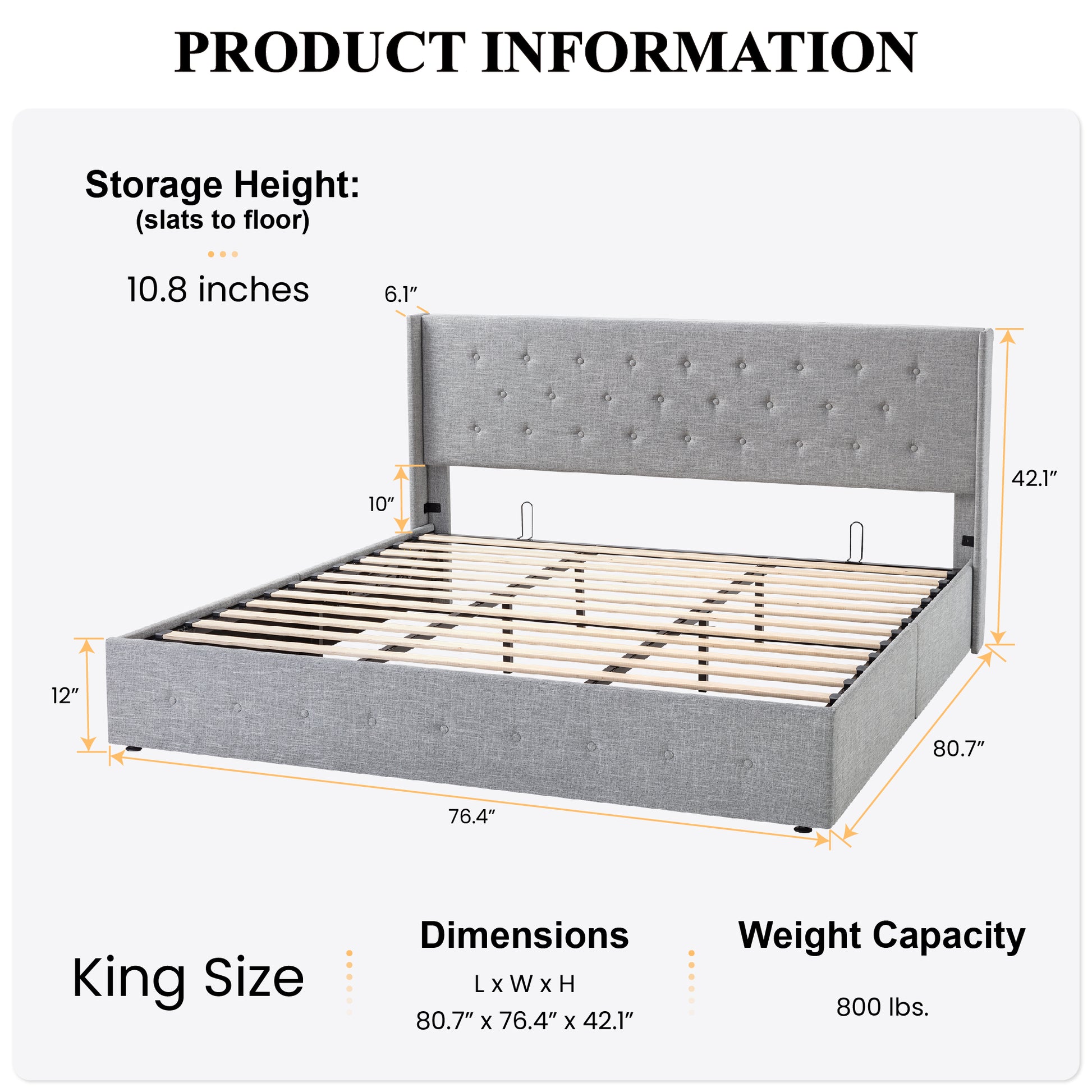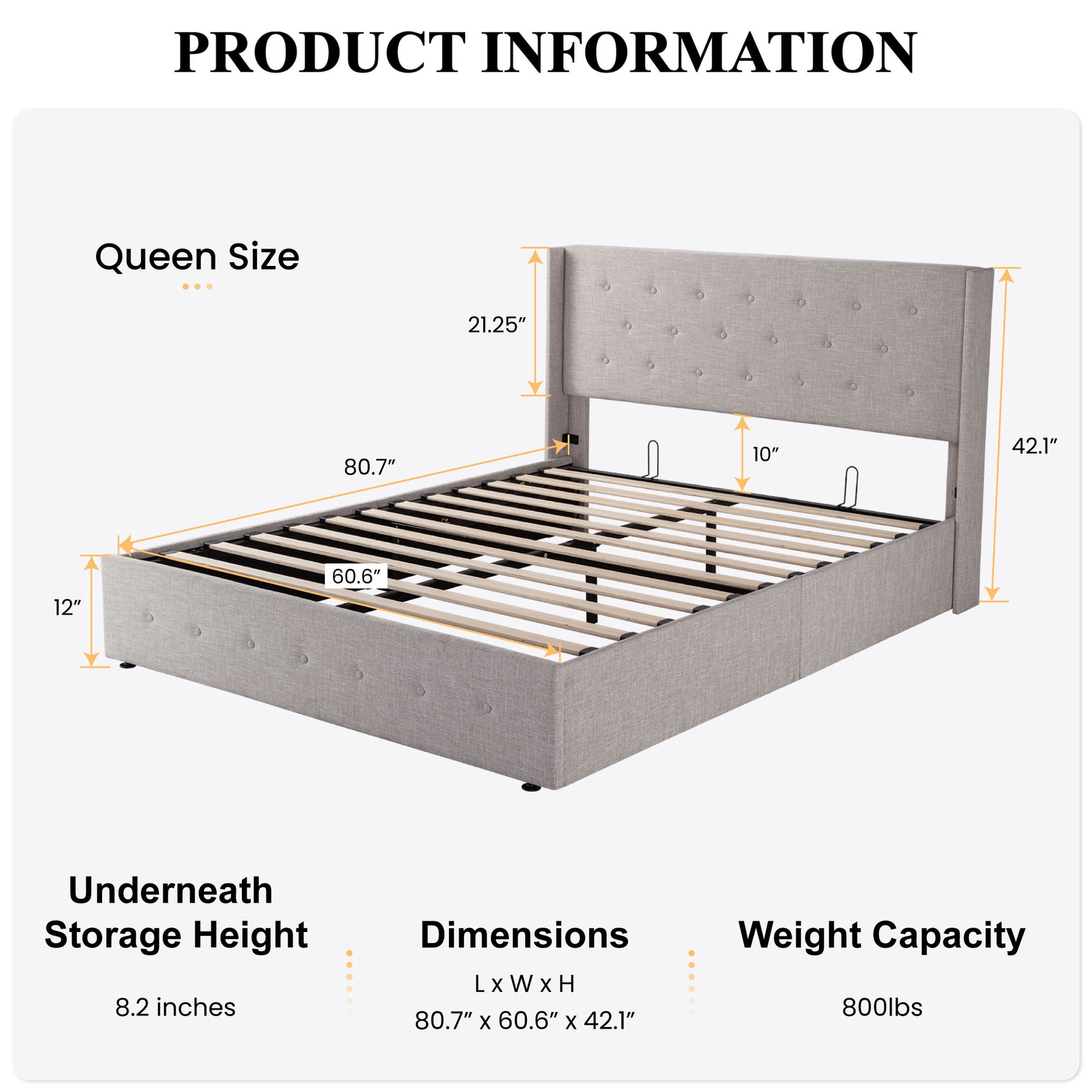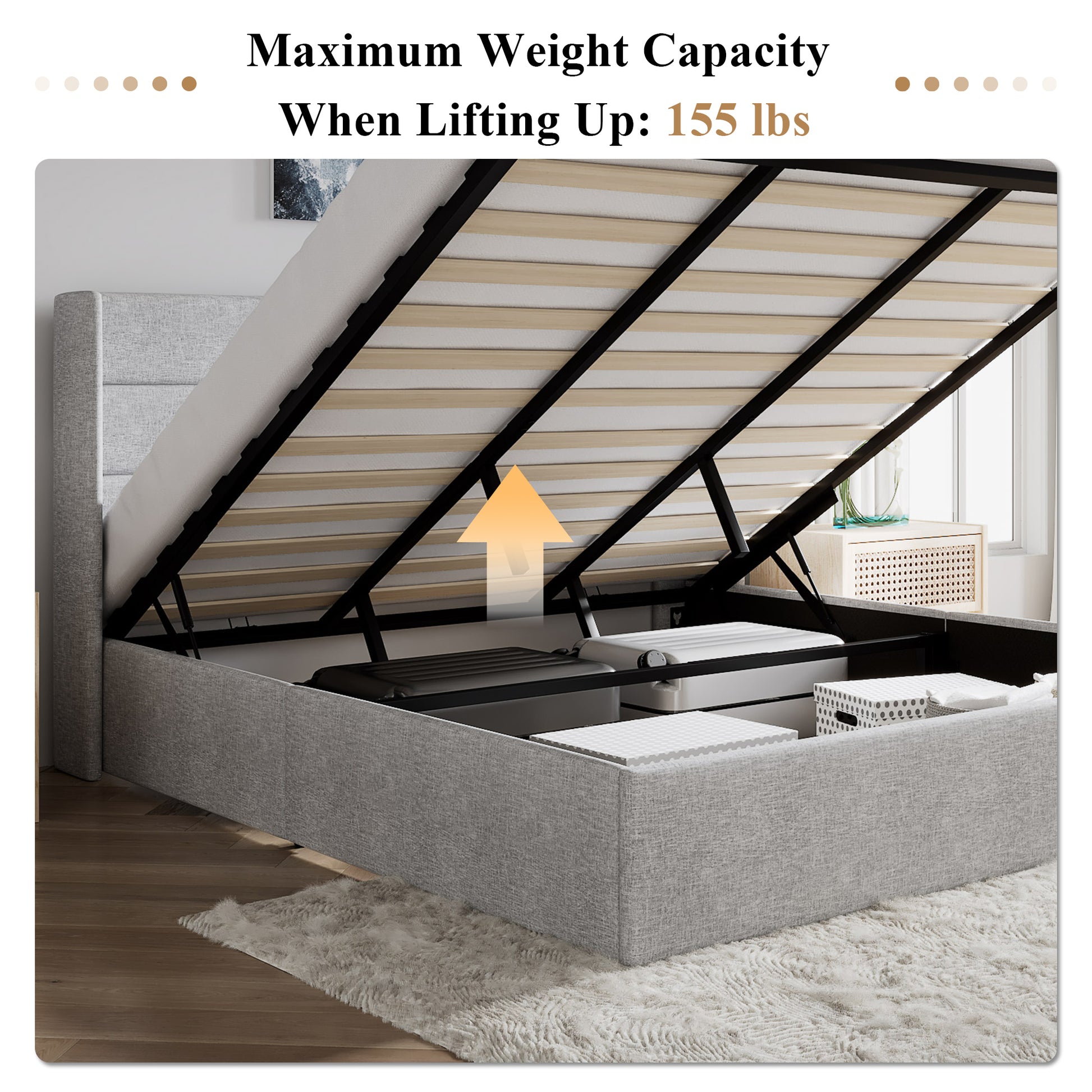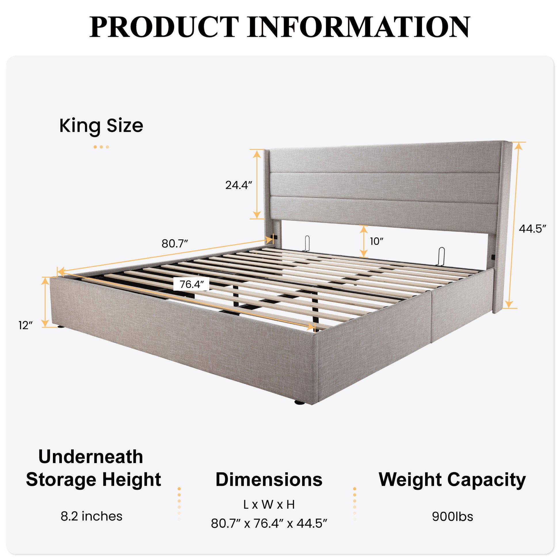 Upholstered Stoage Bed Frame with Lift Up Storage, Wingback Headboard Design