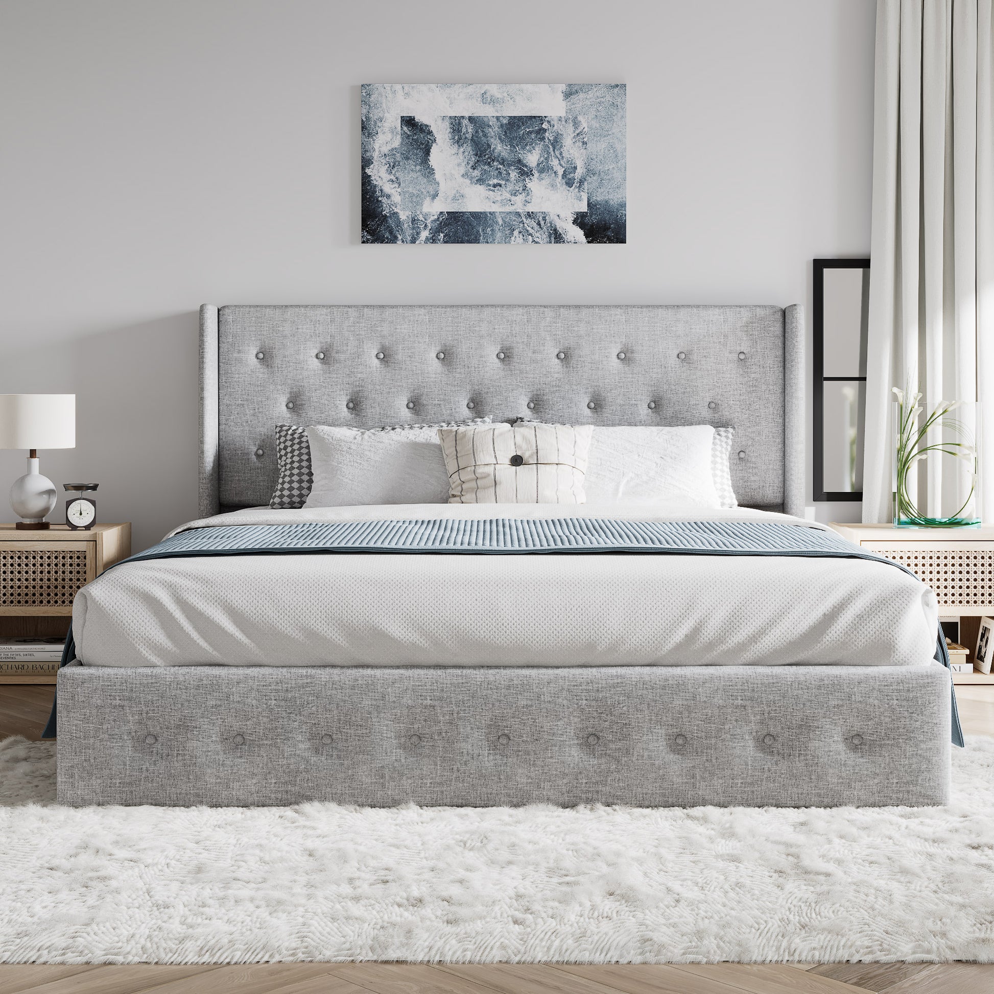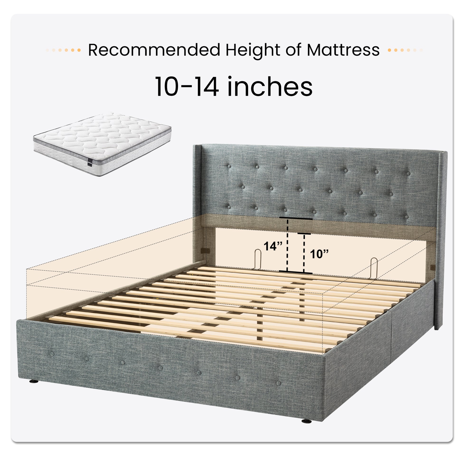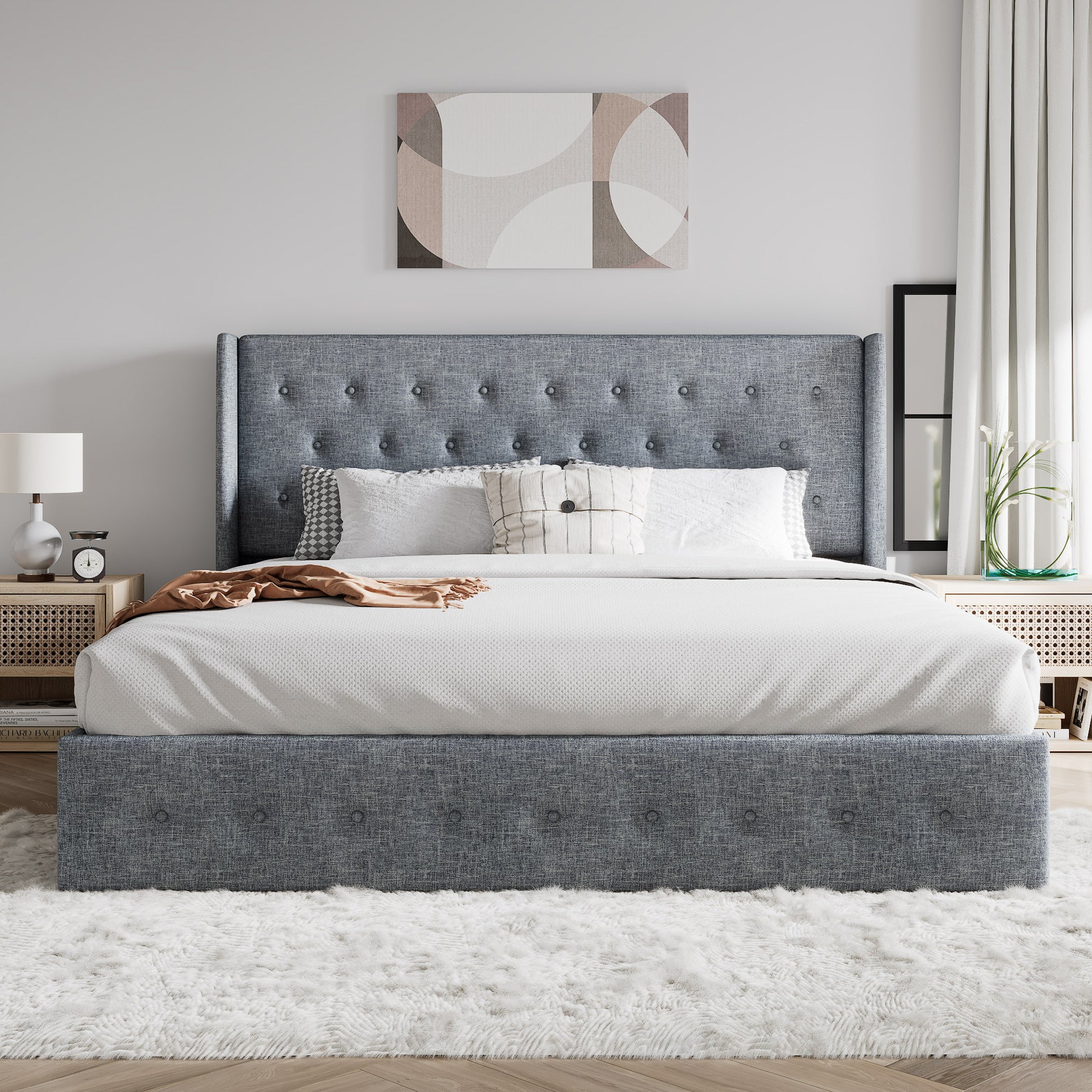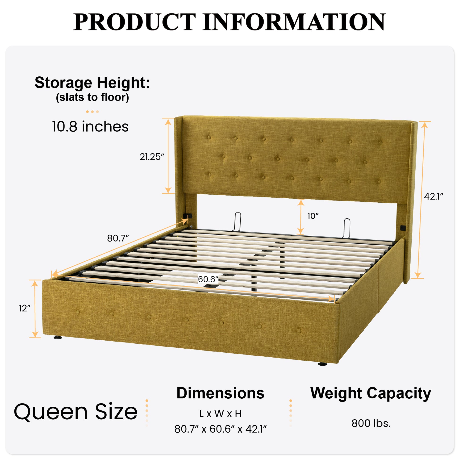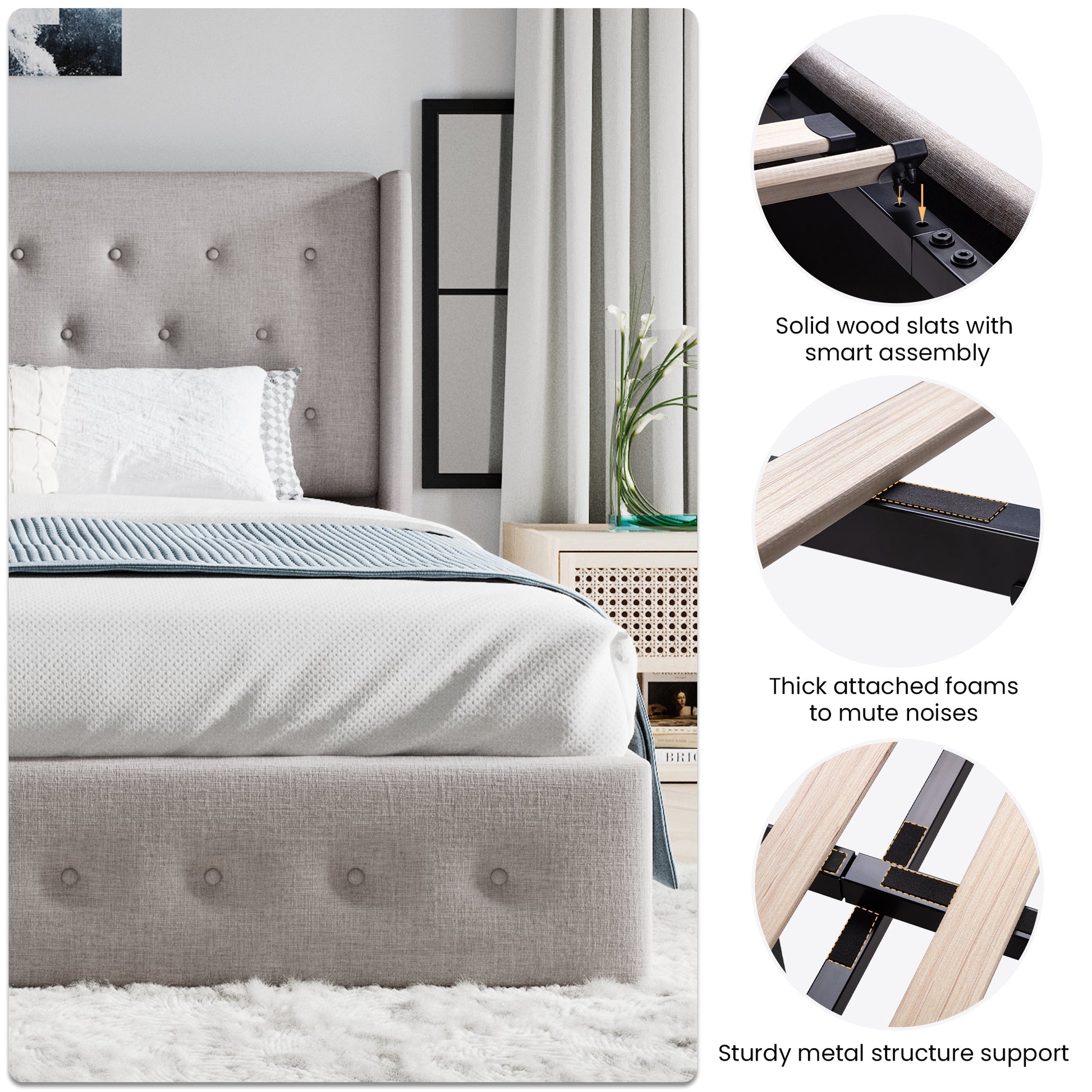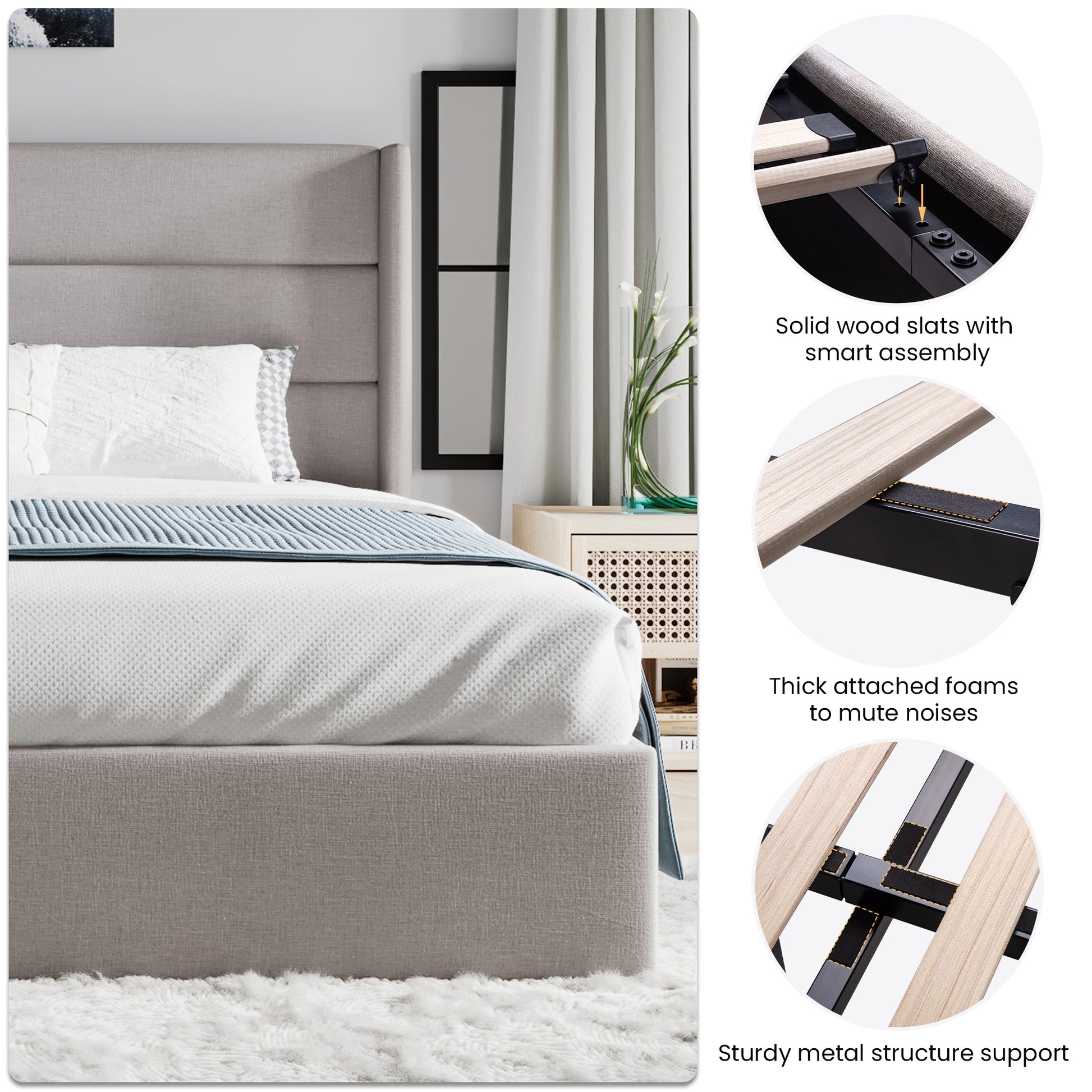 Upholstered Stoage Bed Frame with Lift Up Storage, Wingback Headboard Design