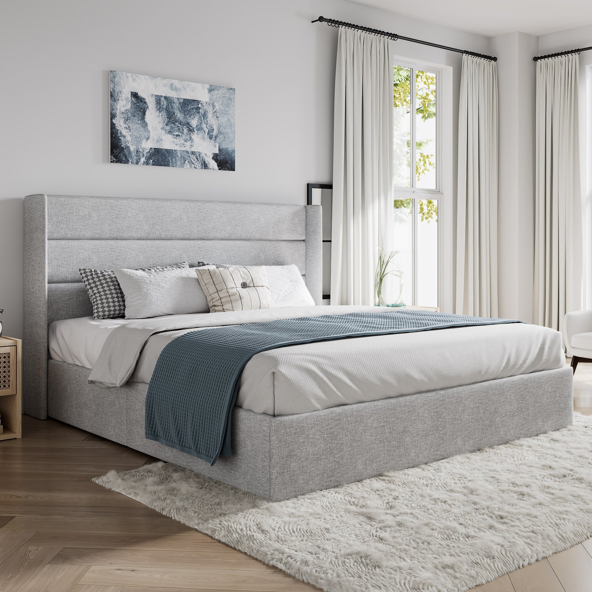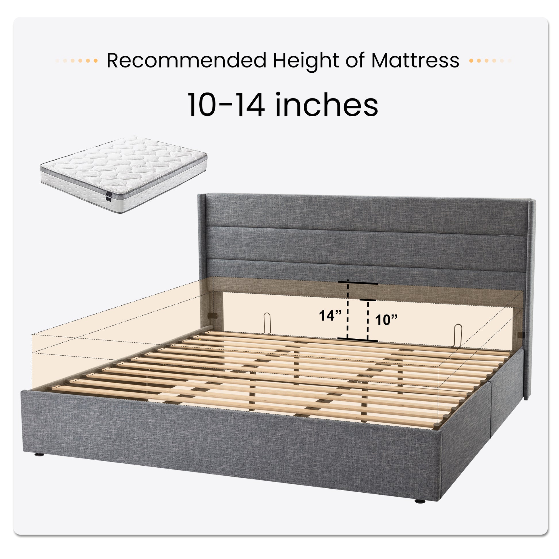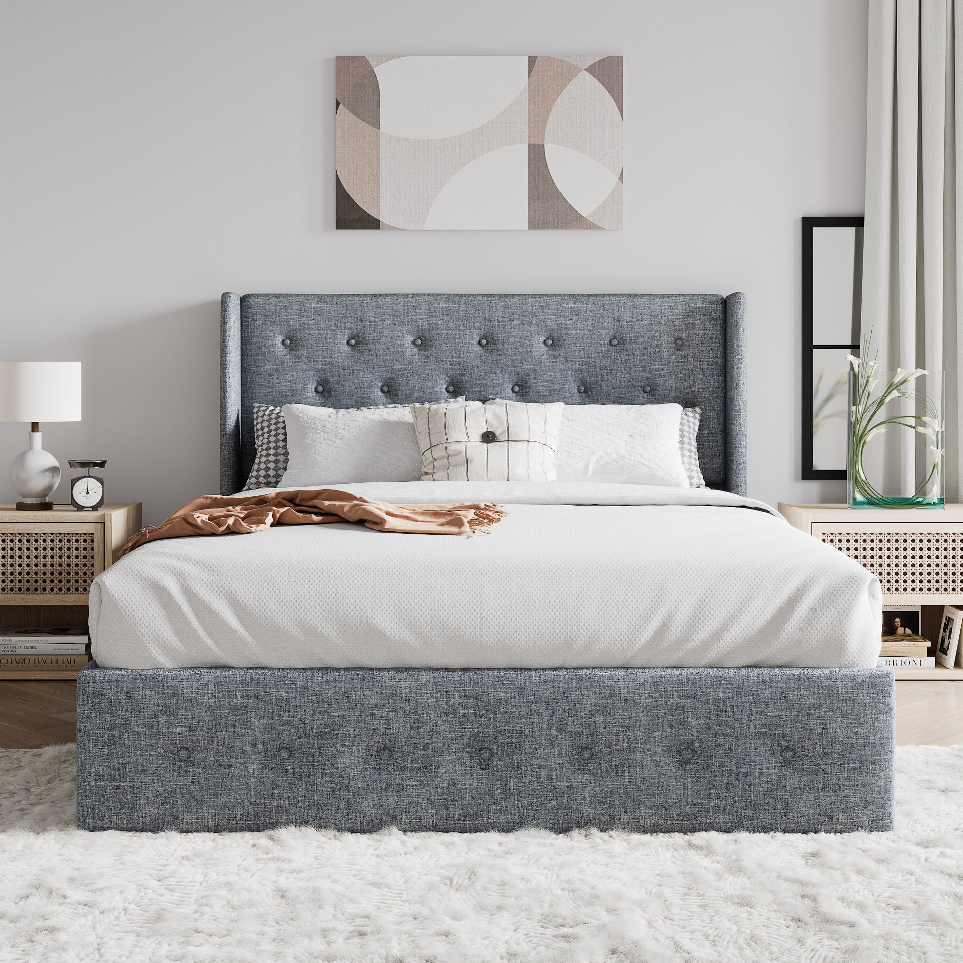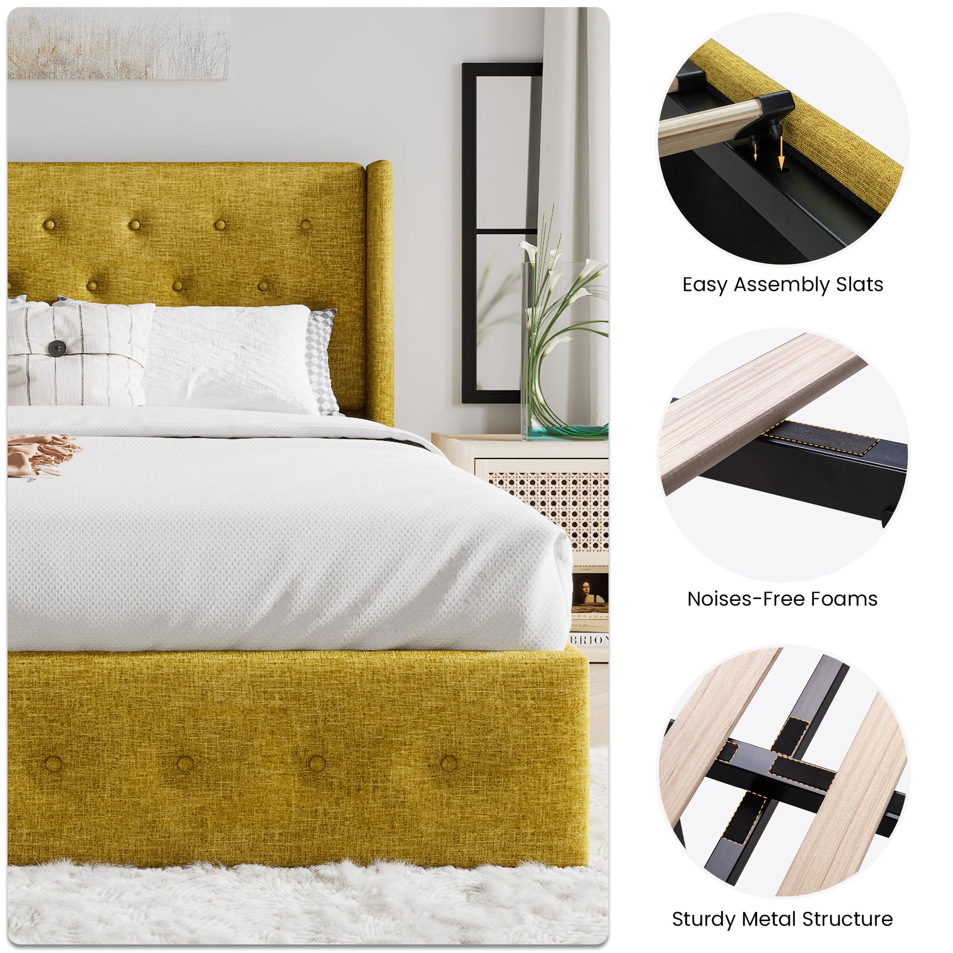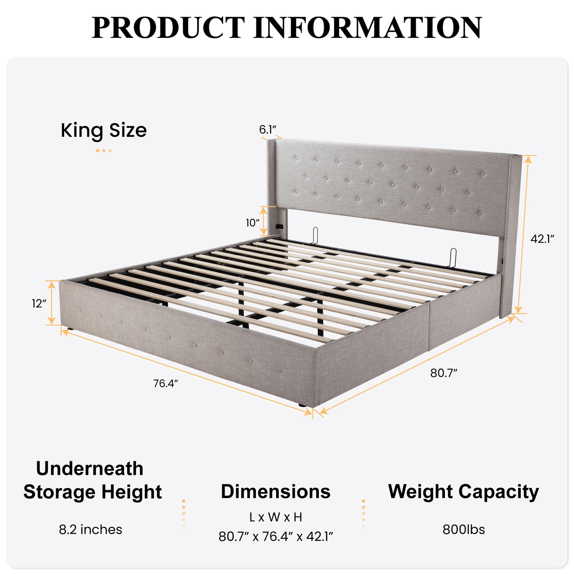 Upholstered Stoage Bed Frame with Lift Up Storage, Wingback Headboard Design