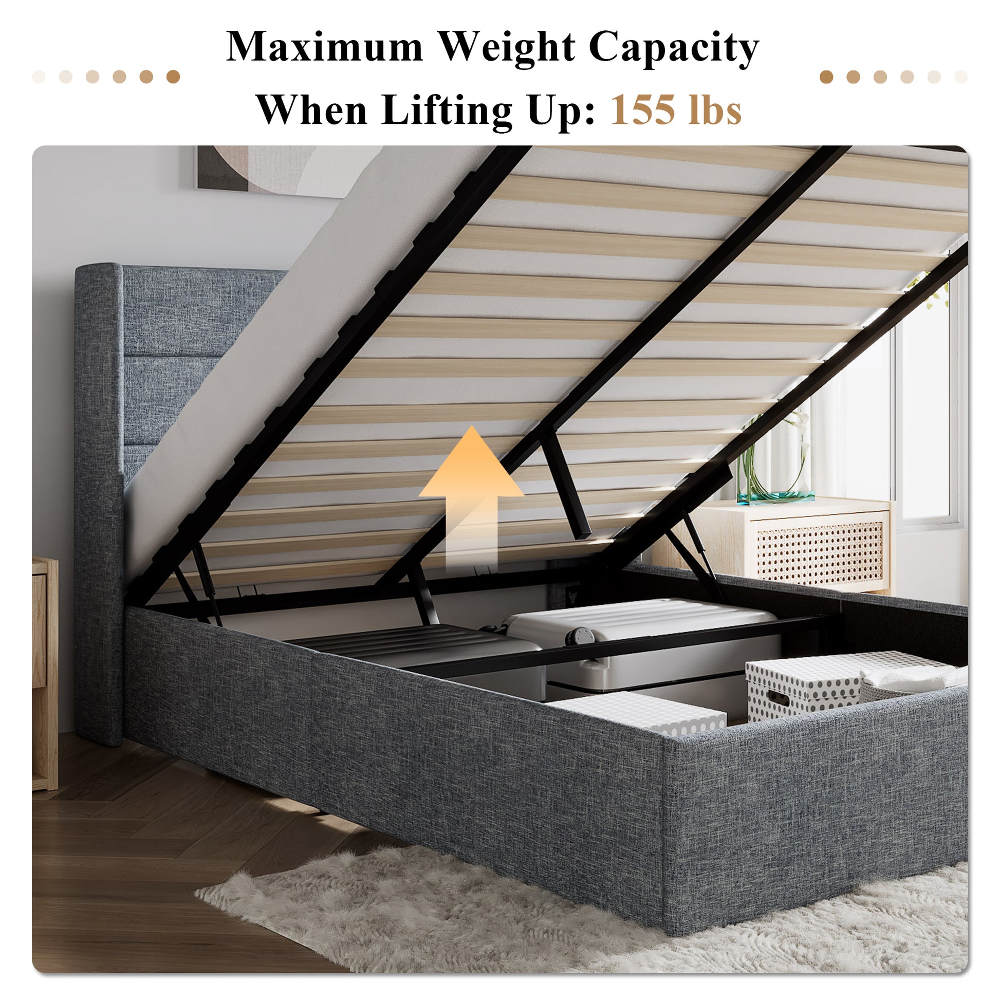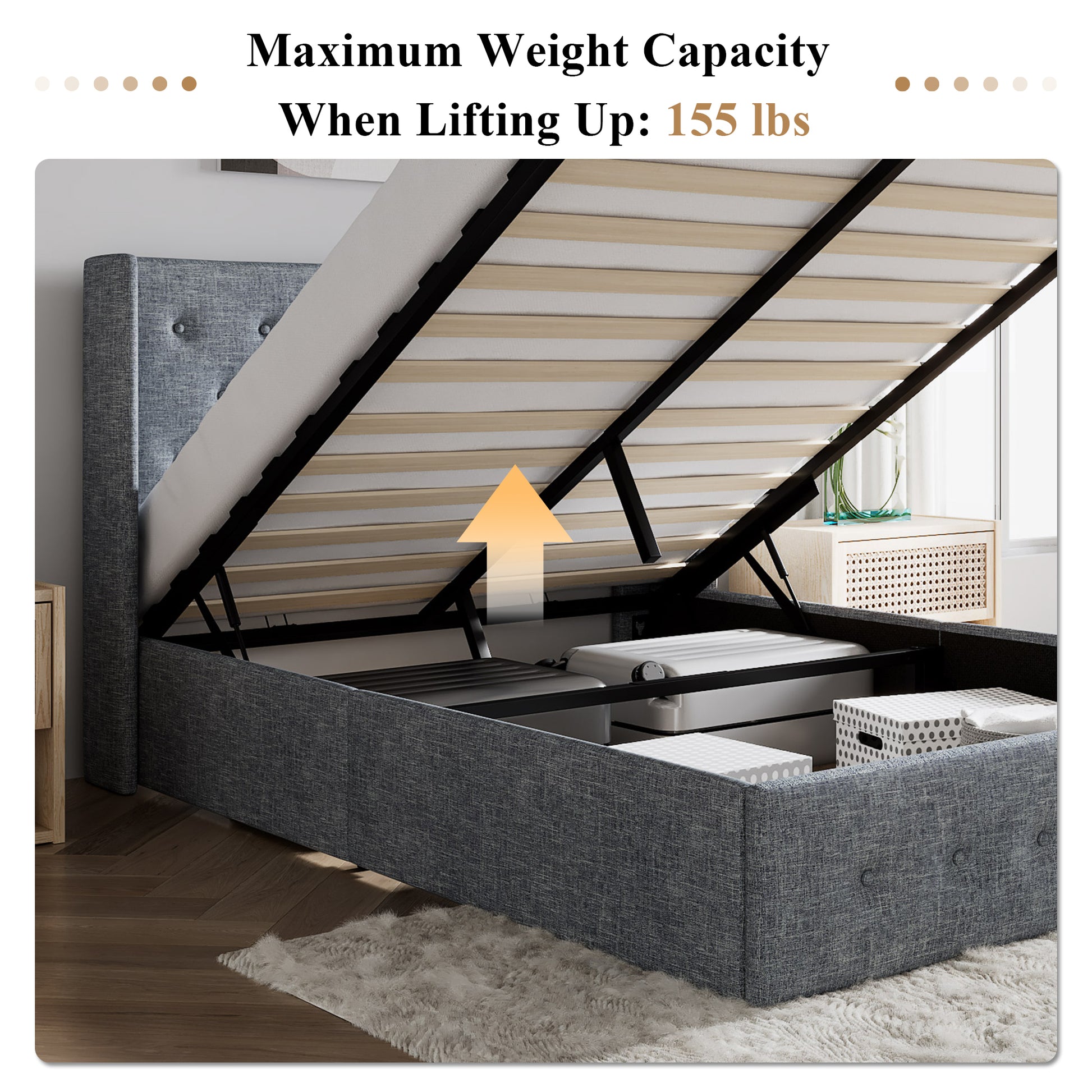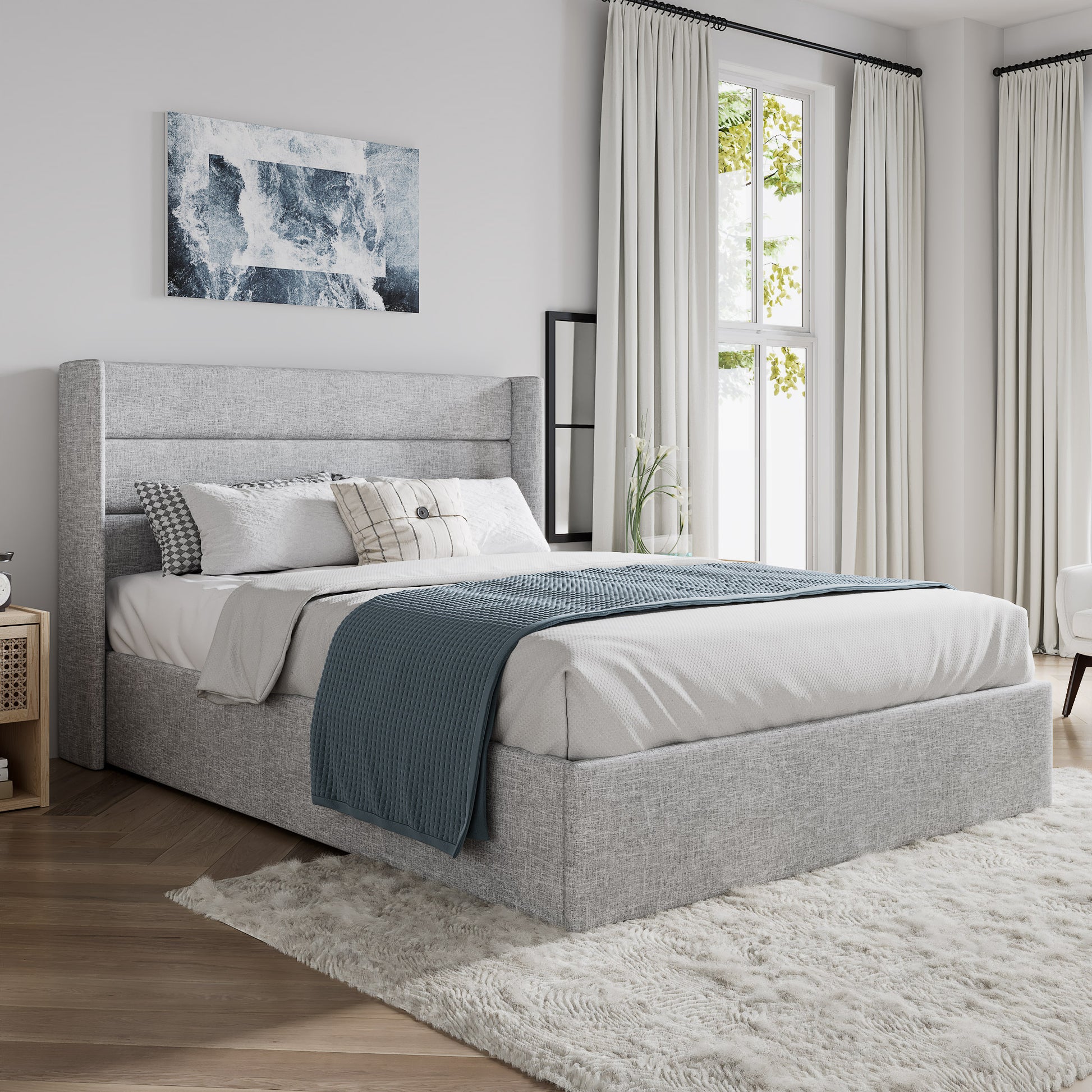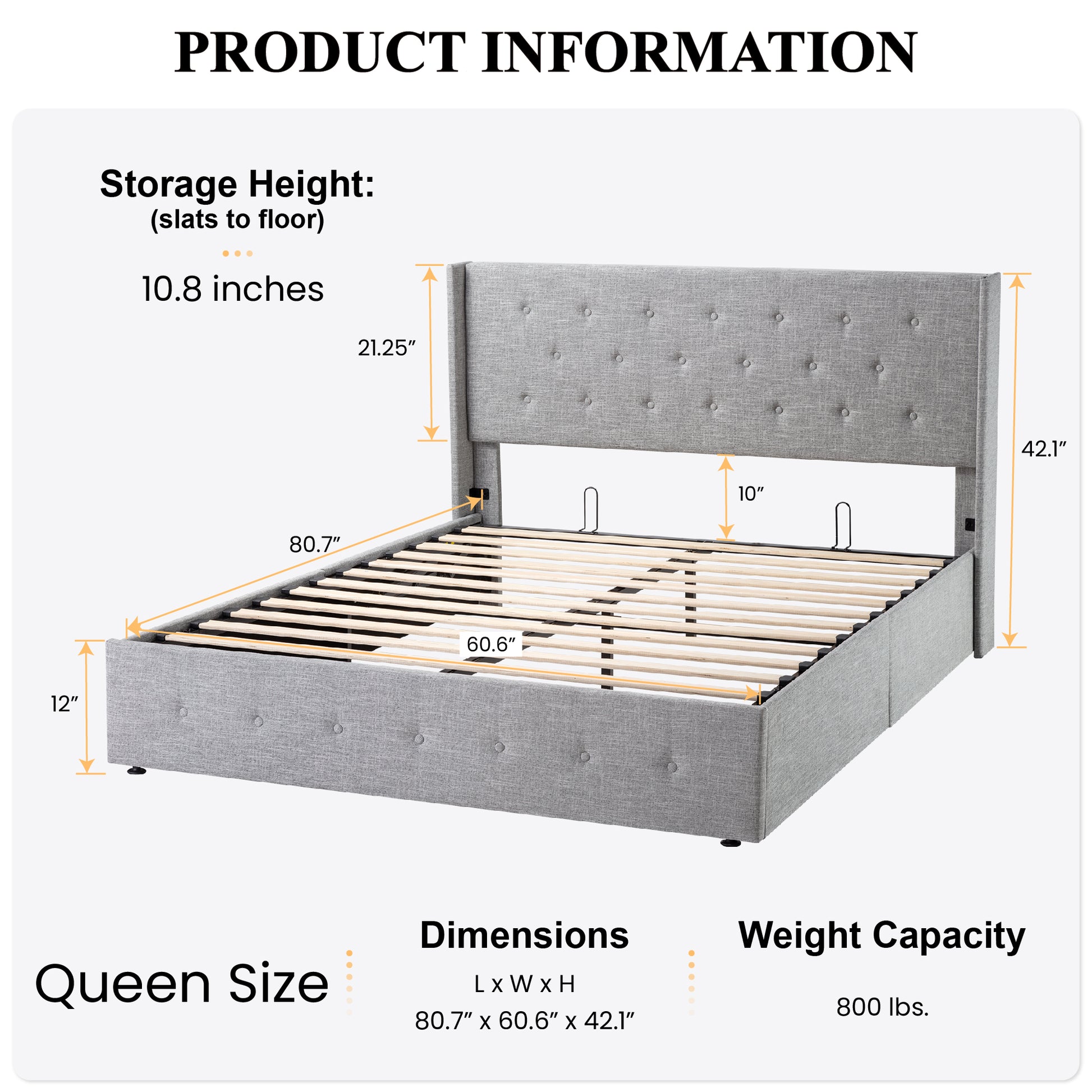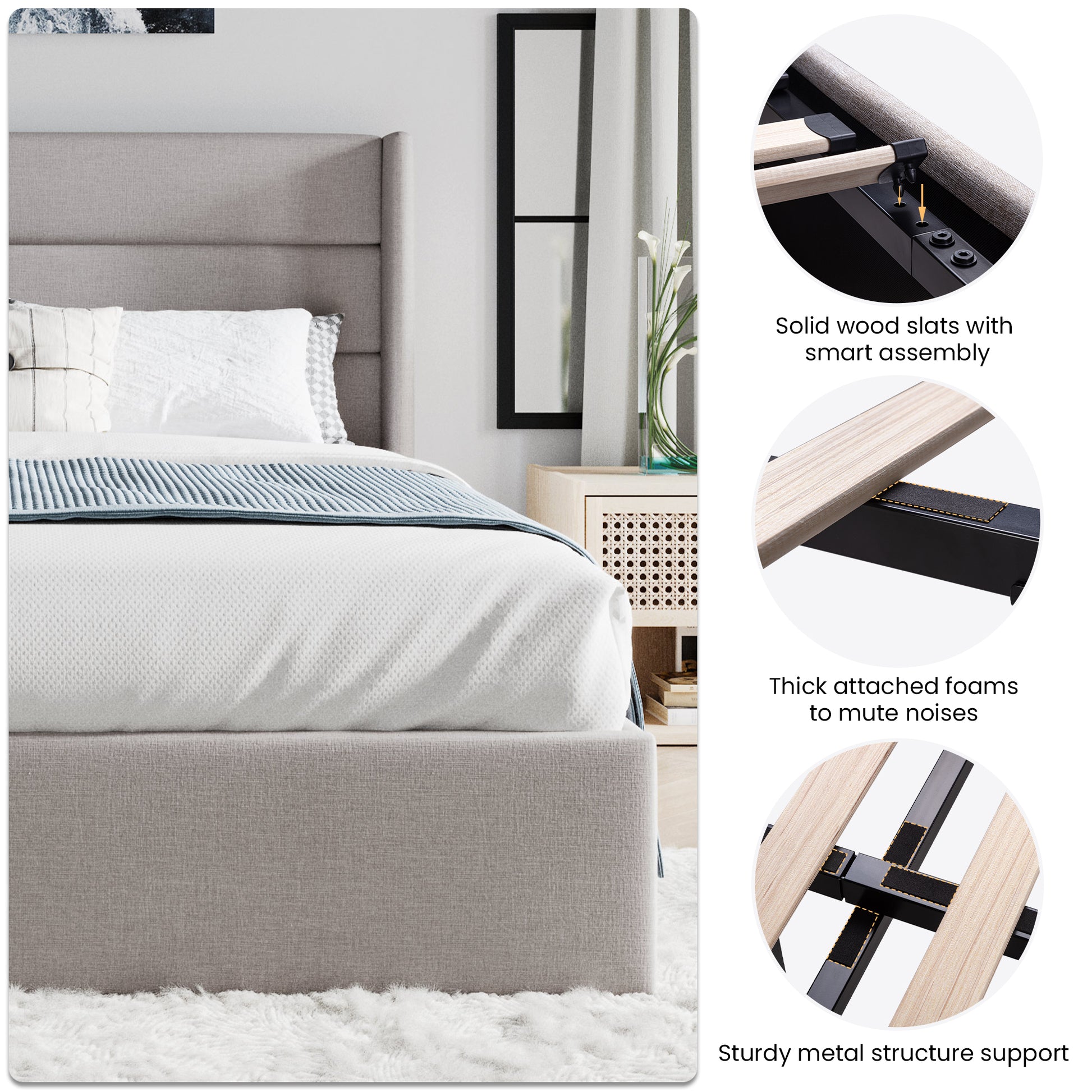 Upholstered Stoage Bed Frame with Lift Up Storage, Wingback Headboard Design