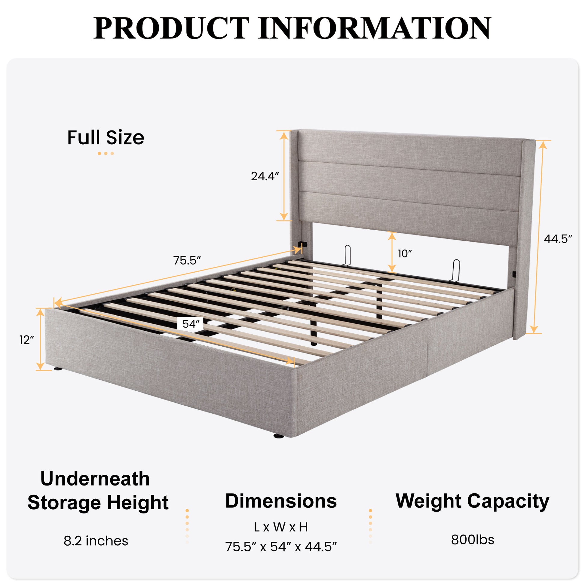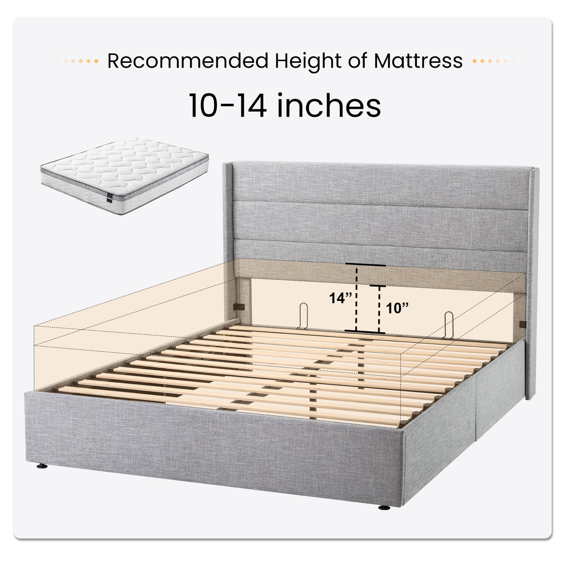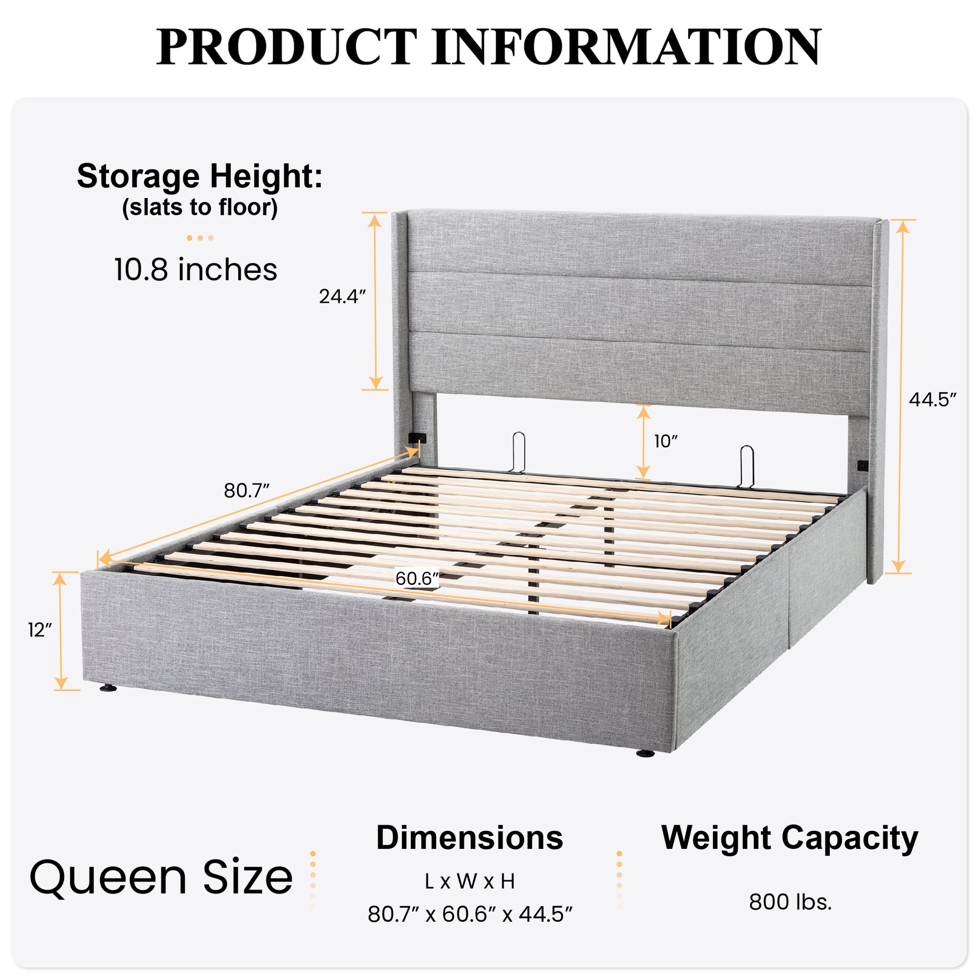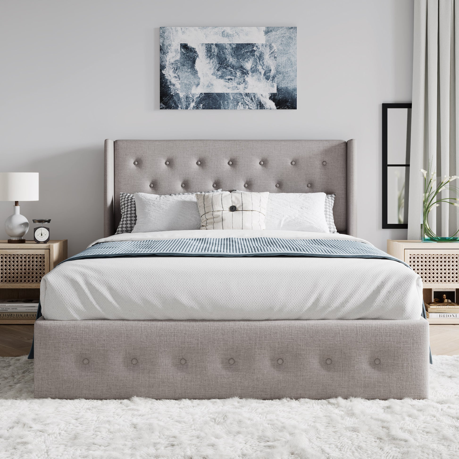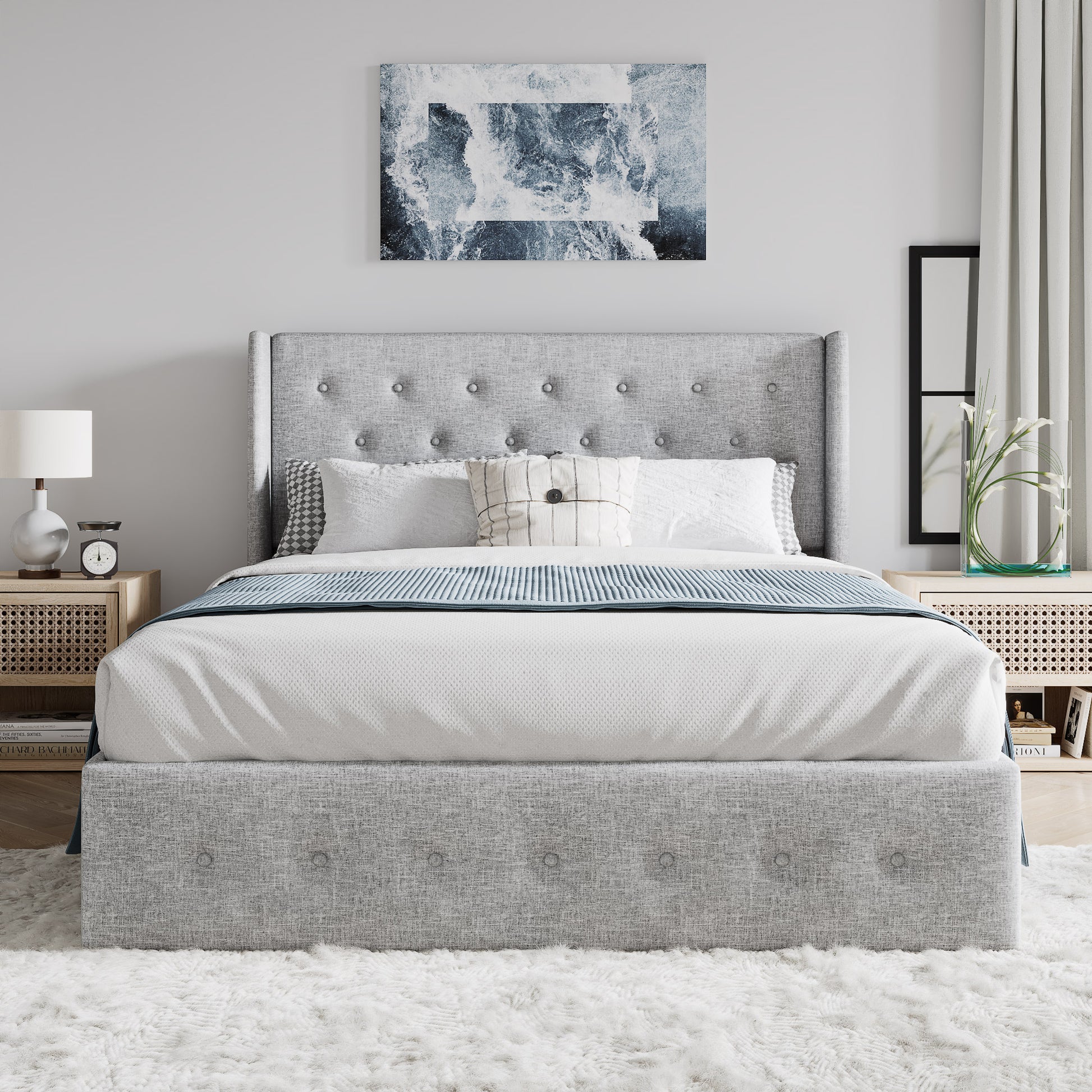 Upholstered Stoage Bed Frame with Lift Up Storage, Wingback Headboard Design