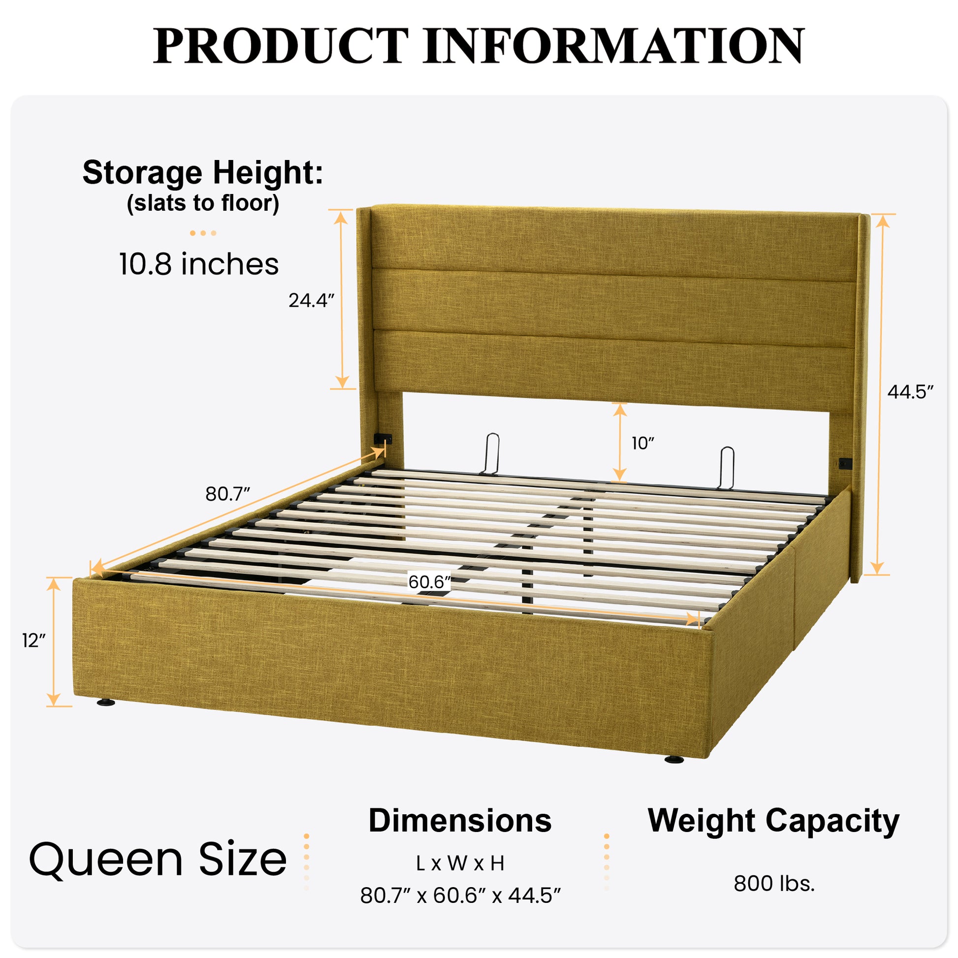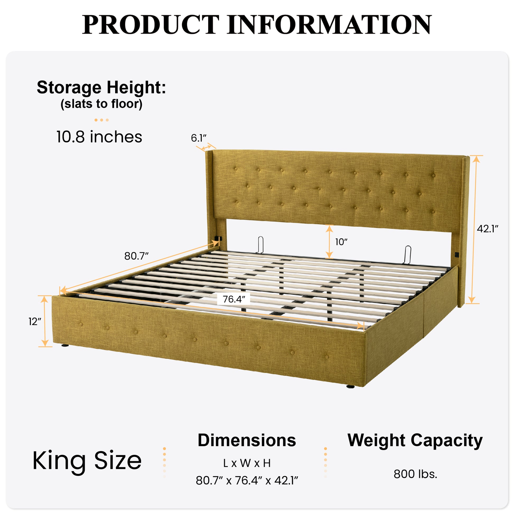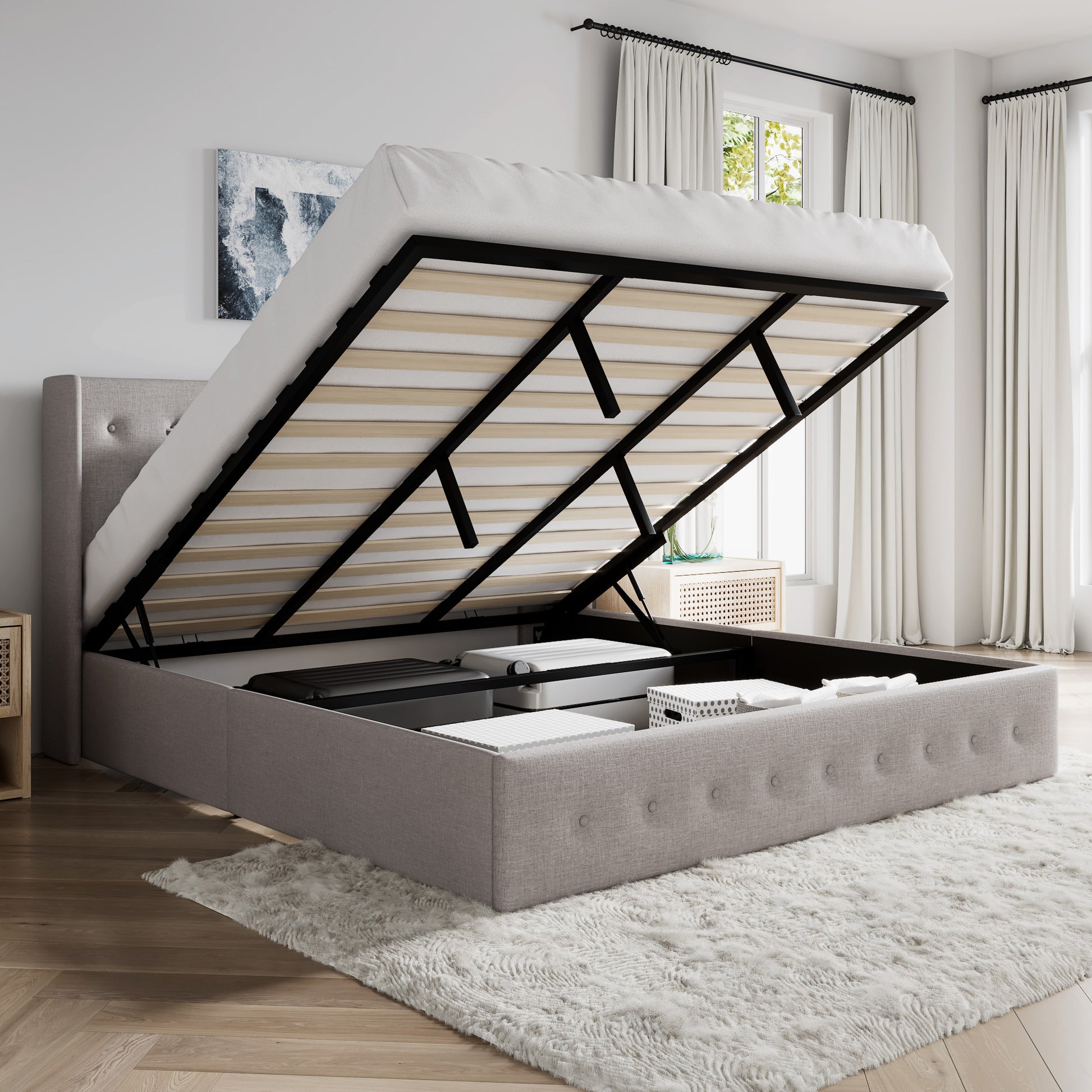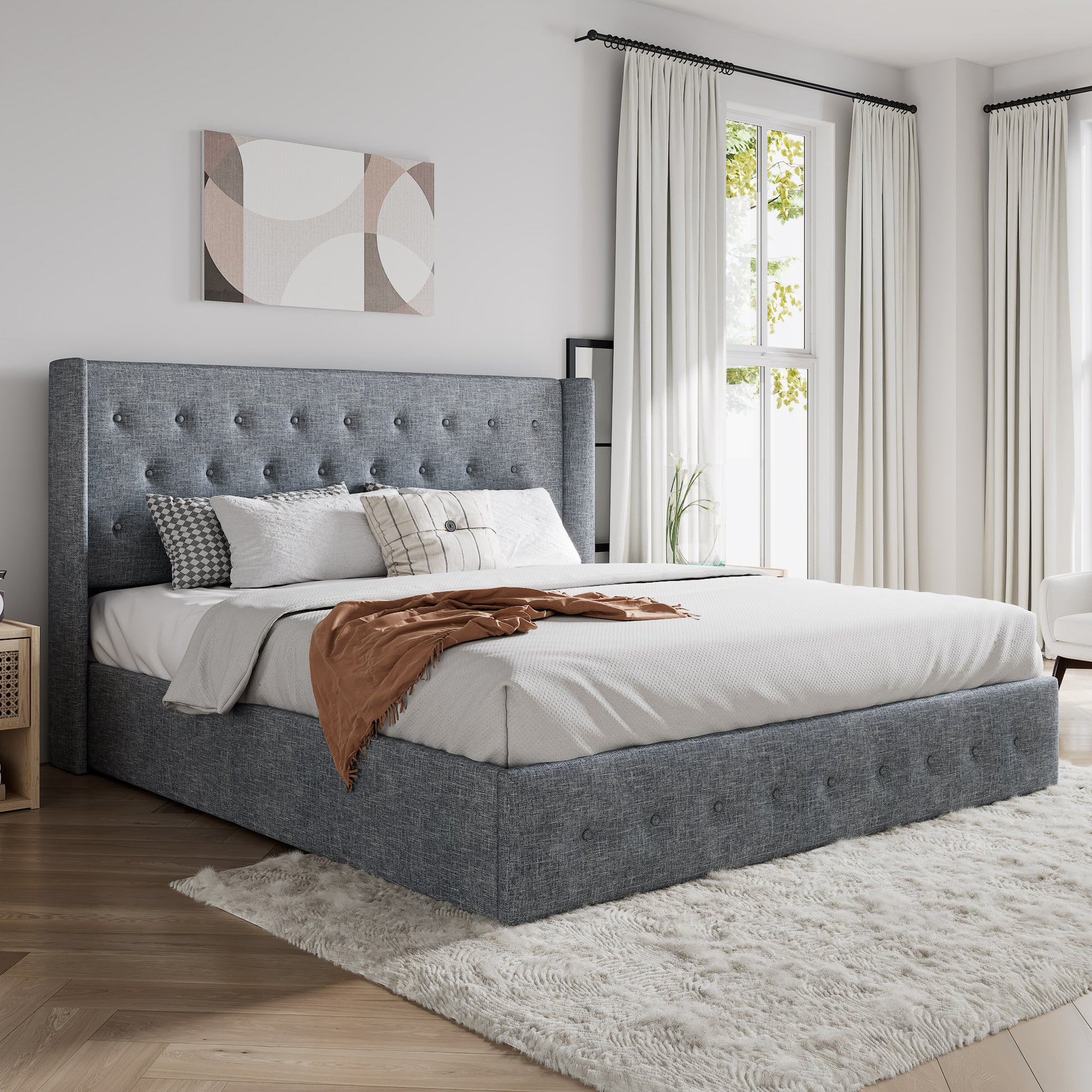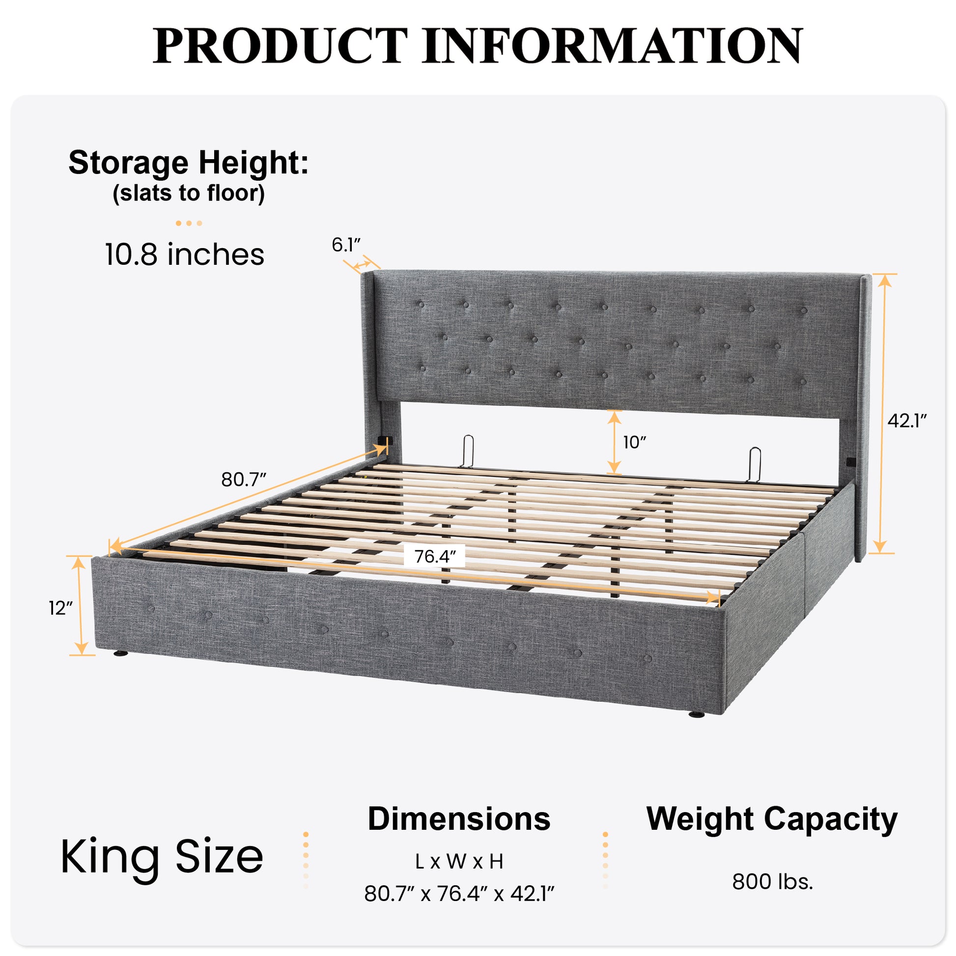 Upholstered Stoage Bed Frame with Lift Up Storage, Wingback Headboard Design