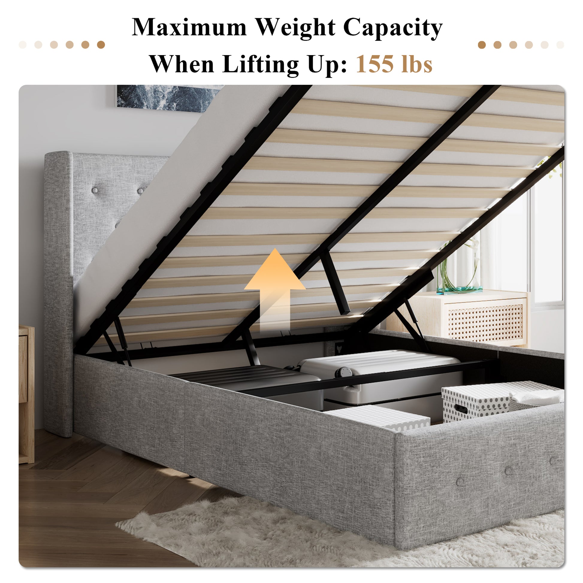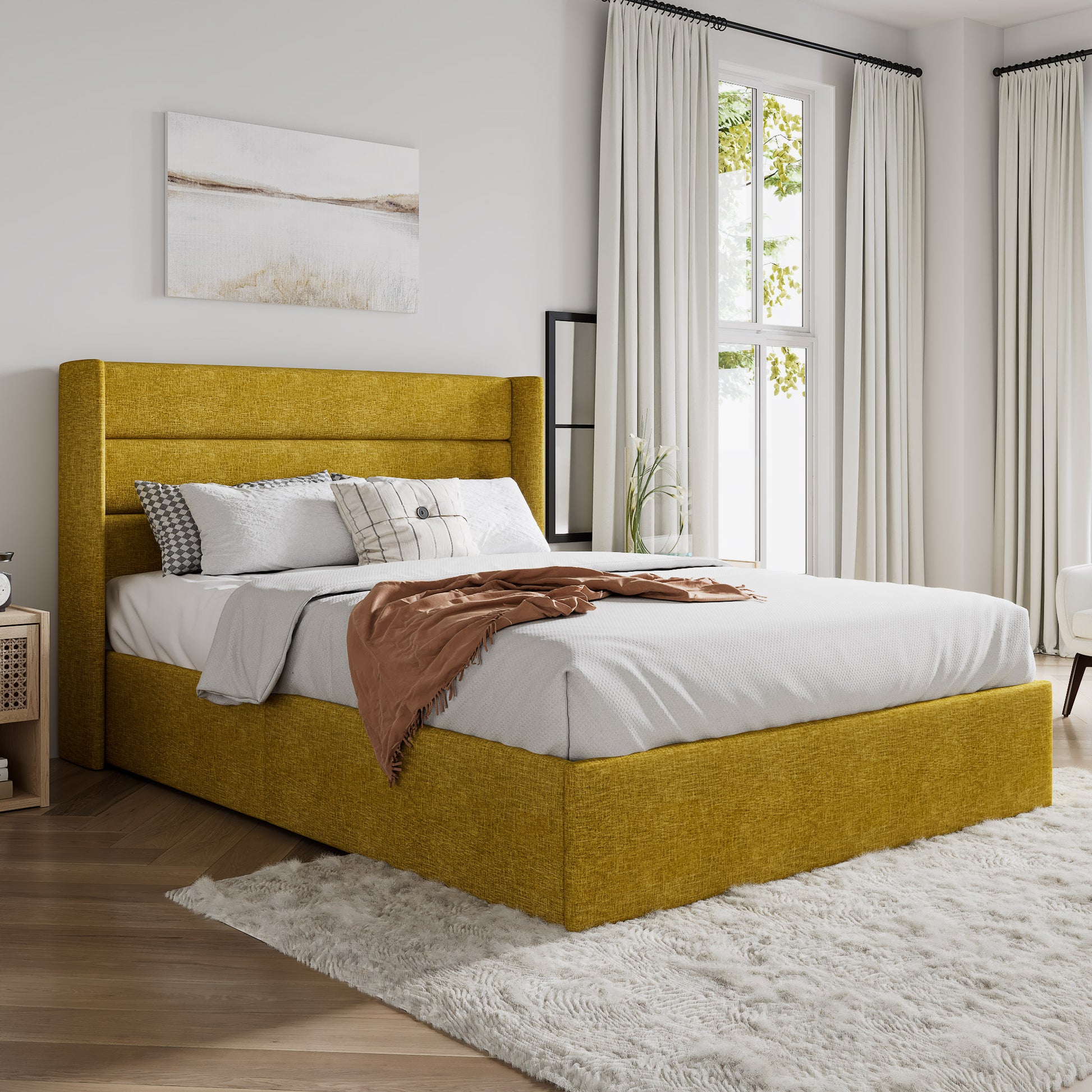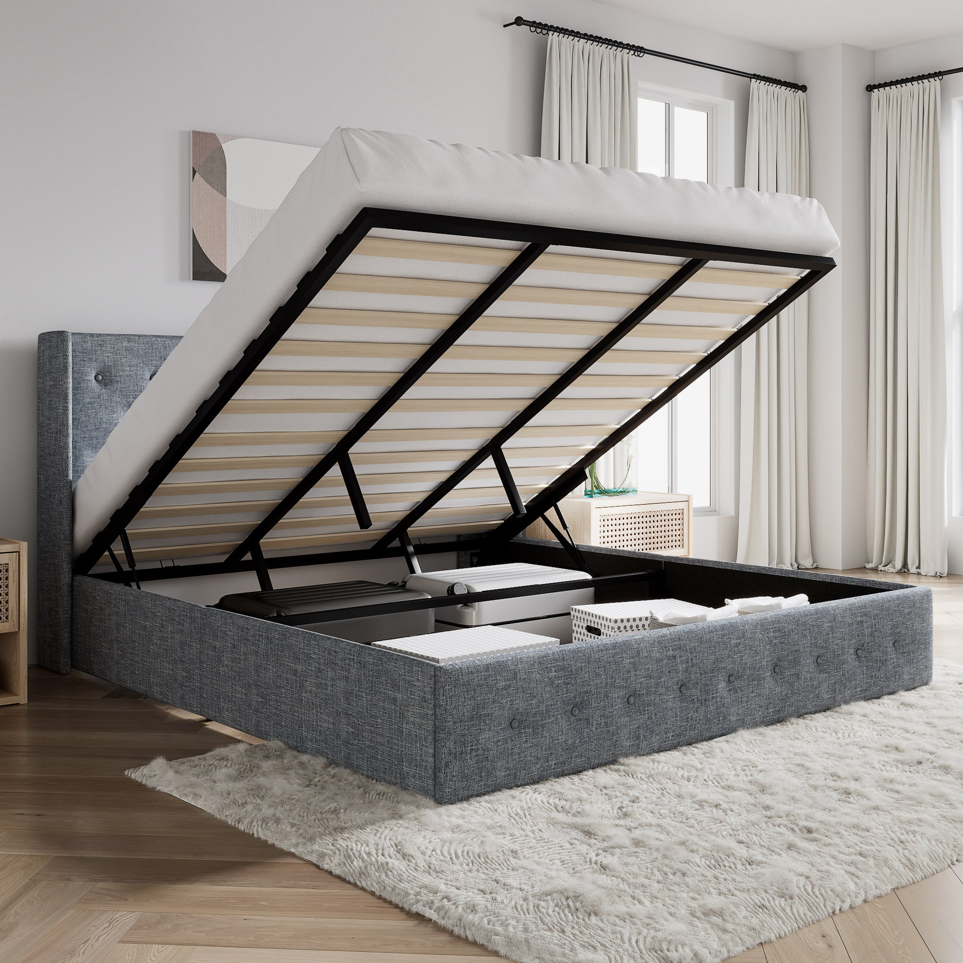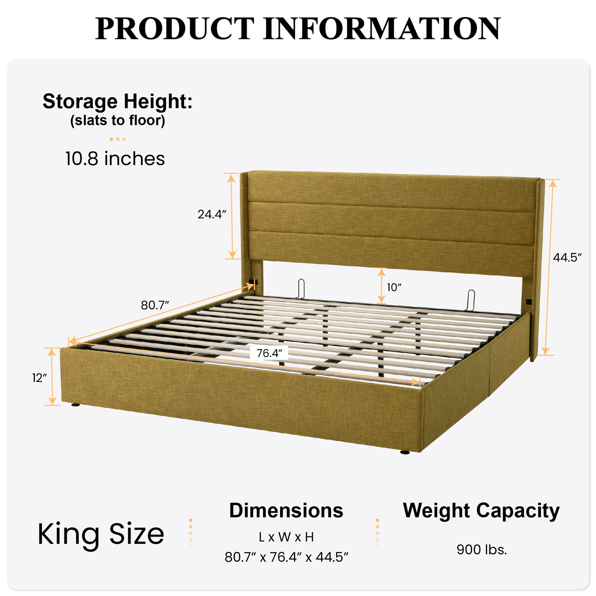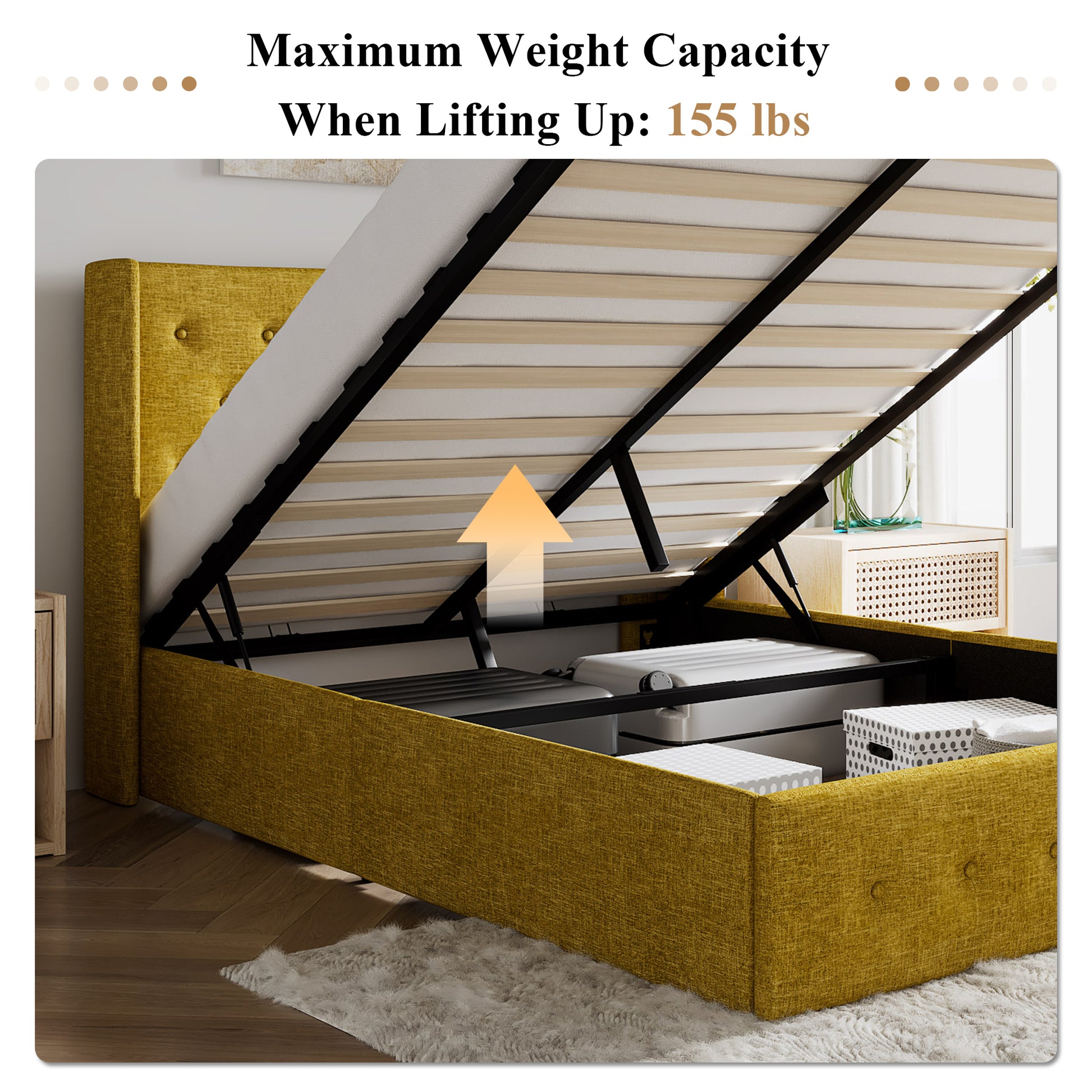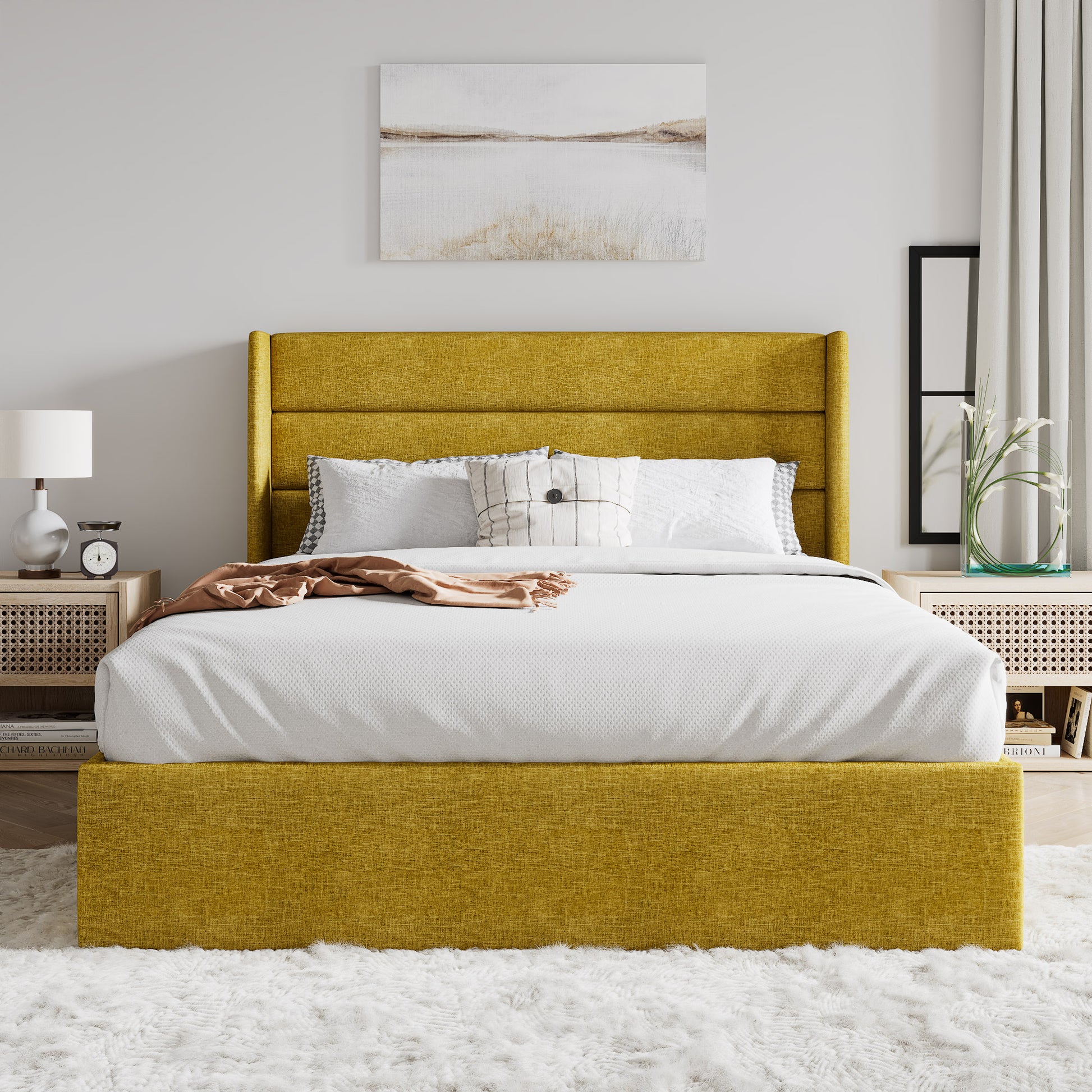 Upholstered Stoage Bed Frame with Lift Up Storage, Wingback Headboard Design