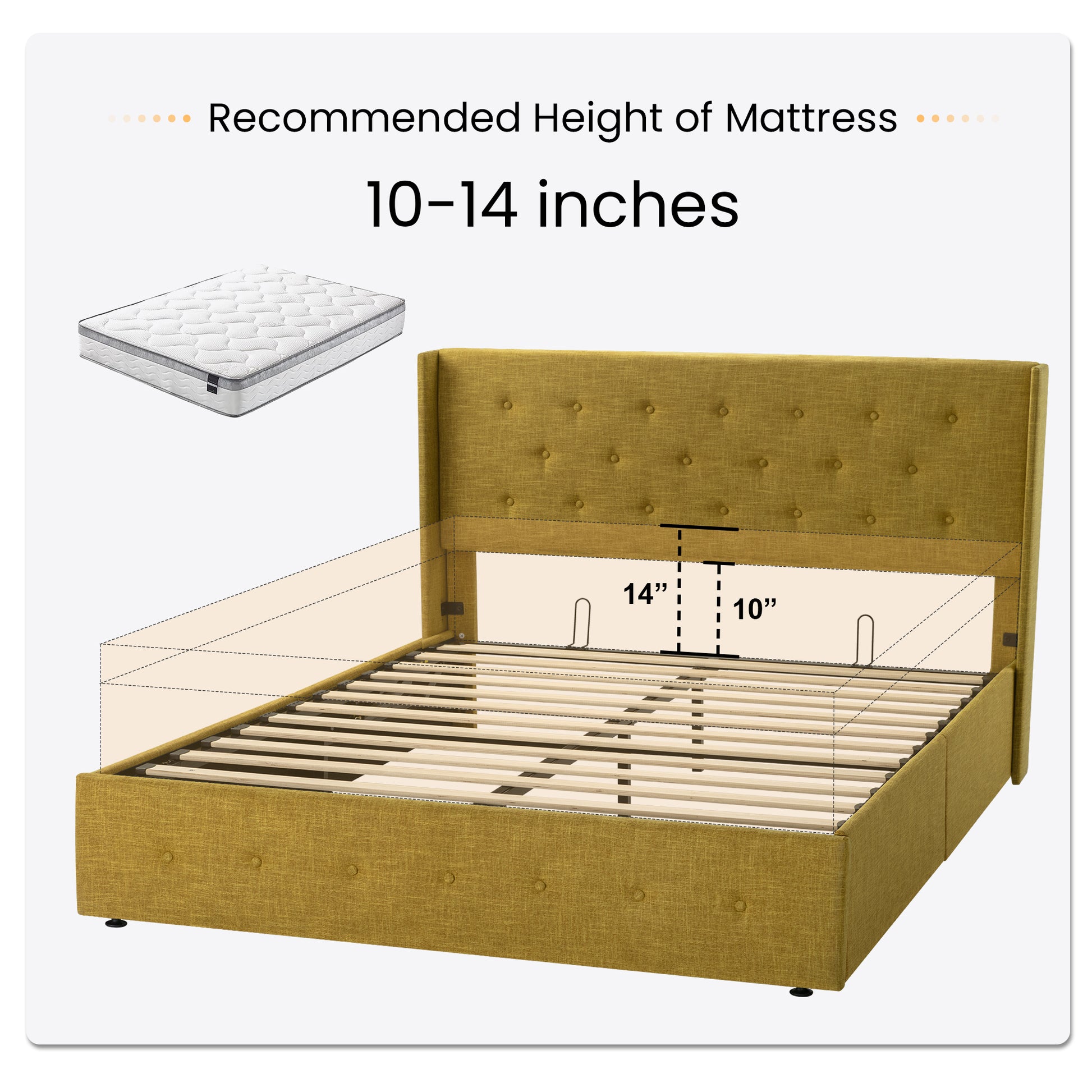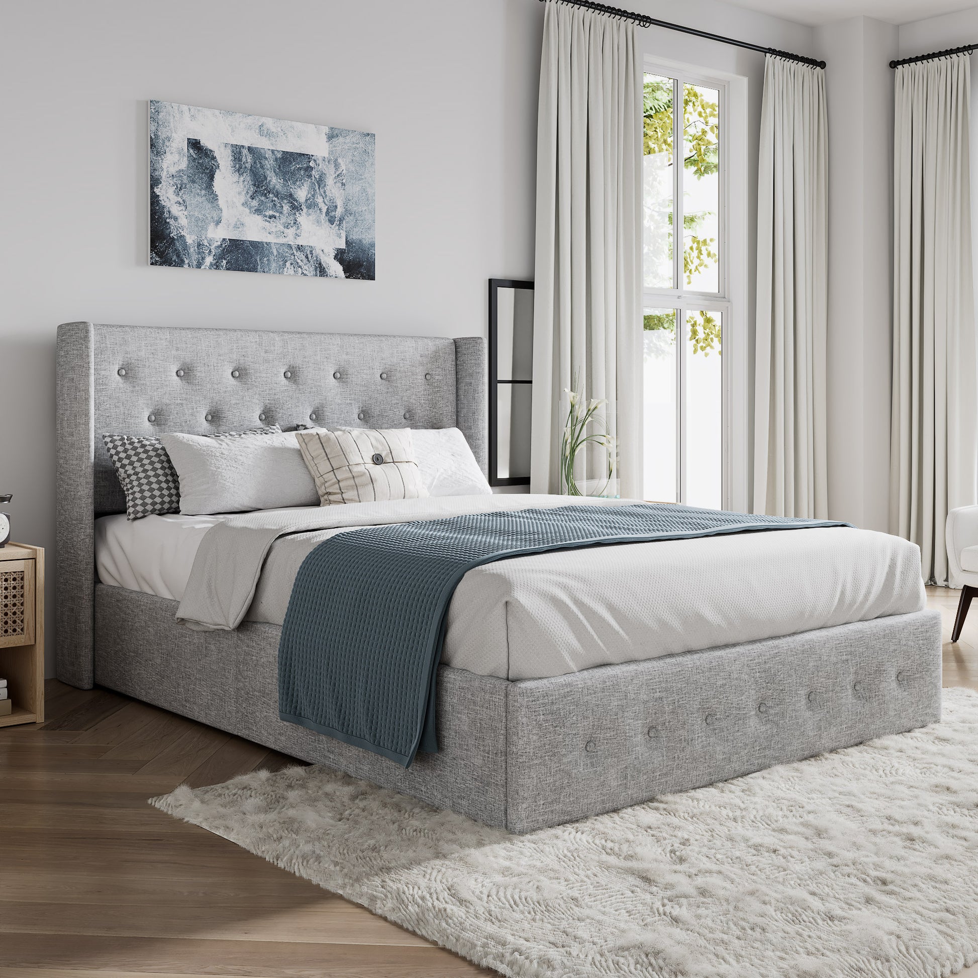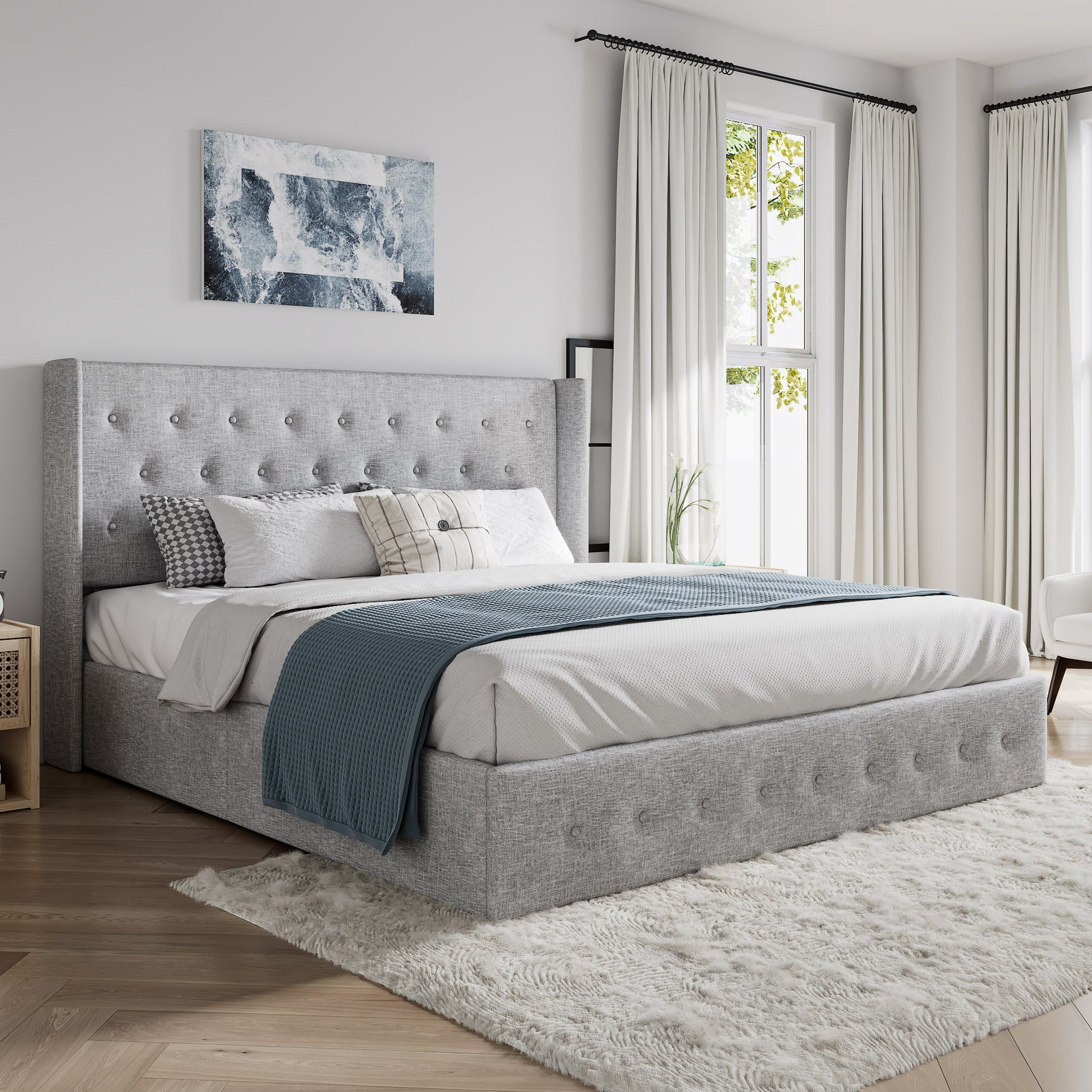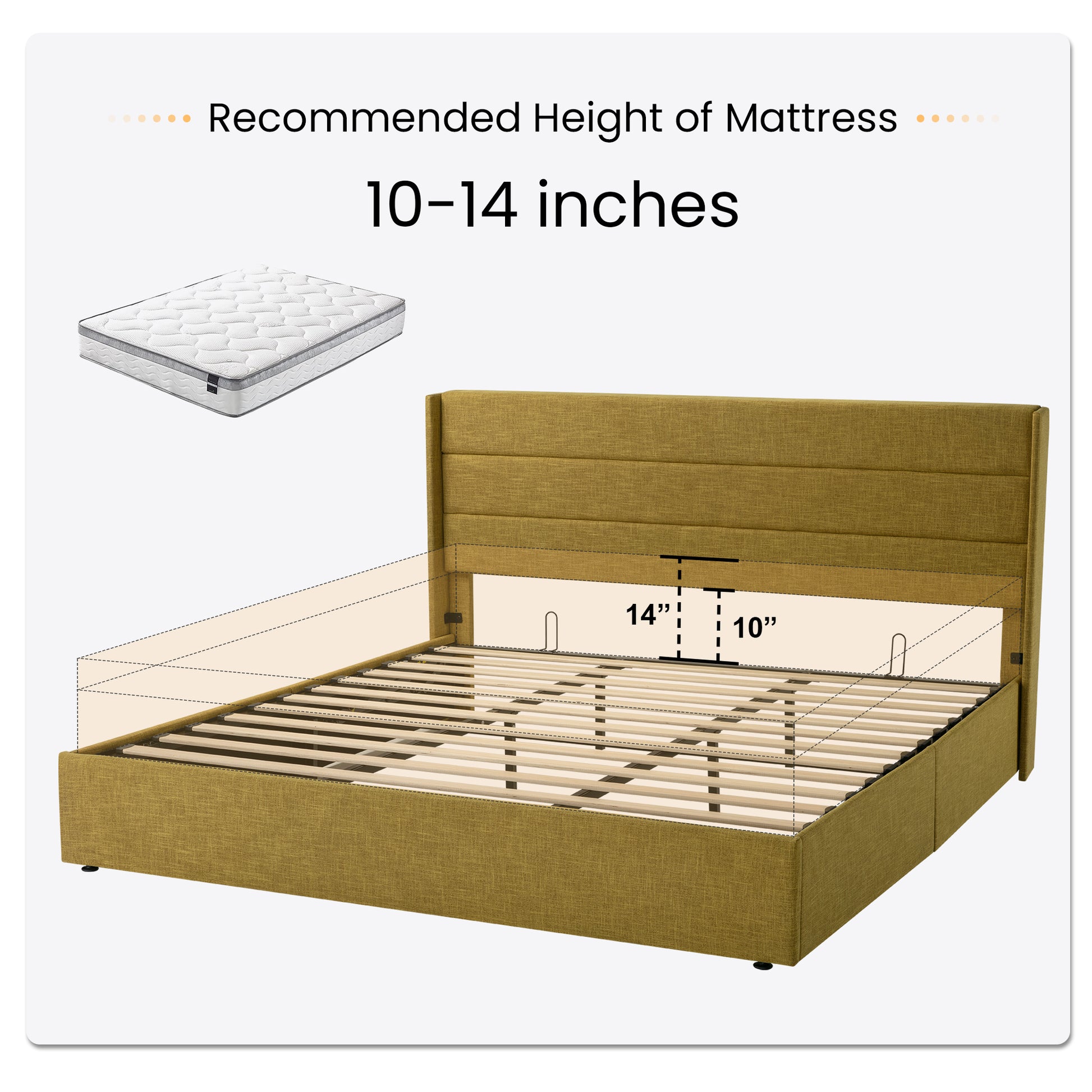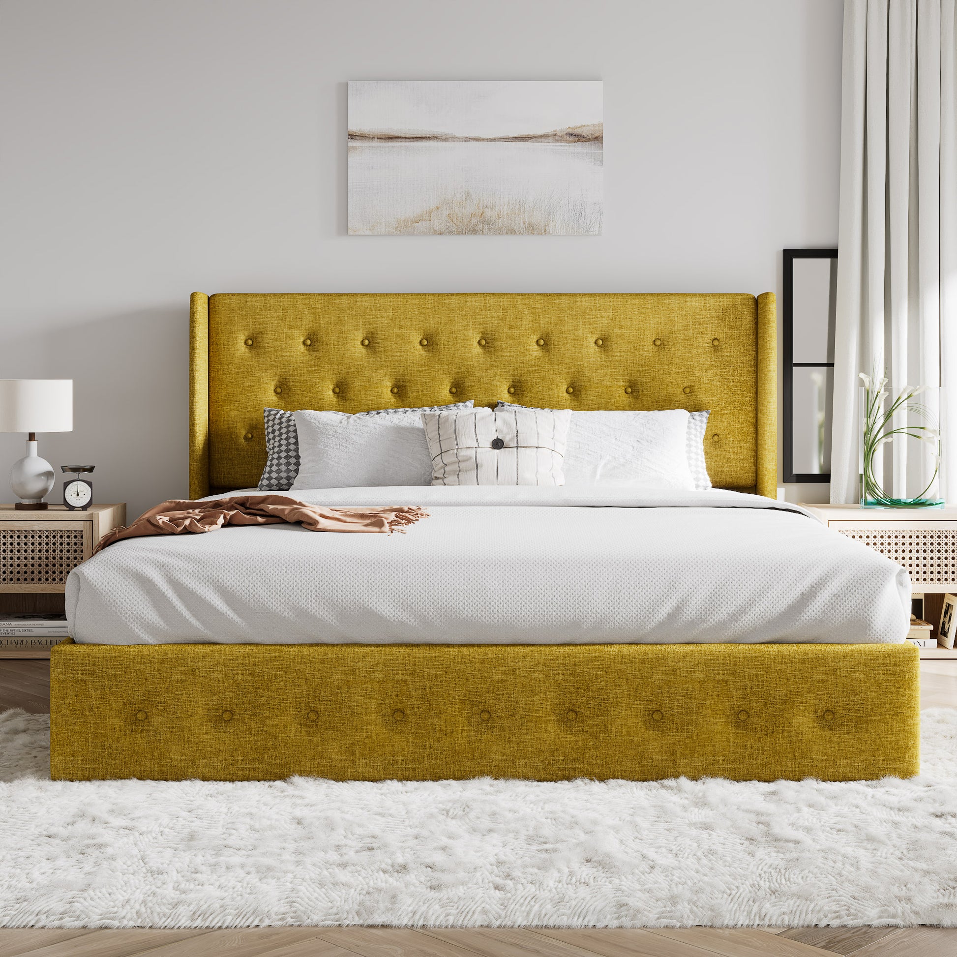 Upholstered Stoage Bed Frame with Lift Up Storage, Wingback Headboard Design