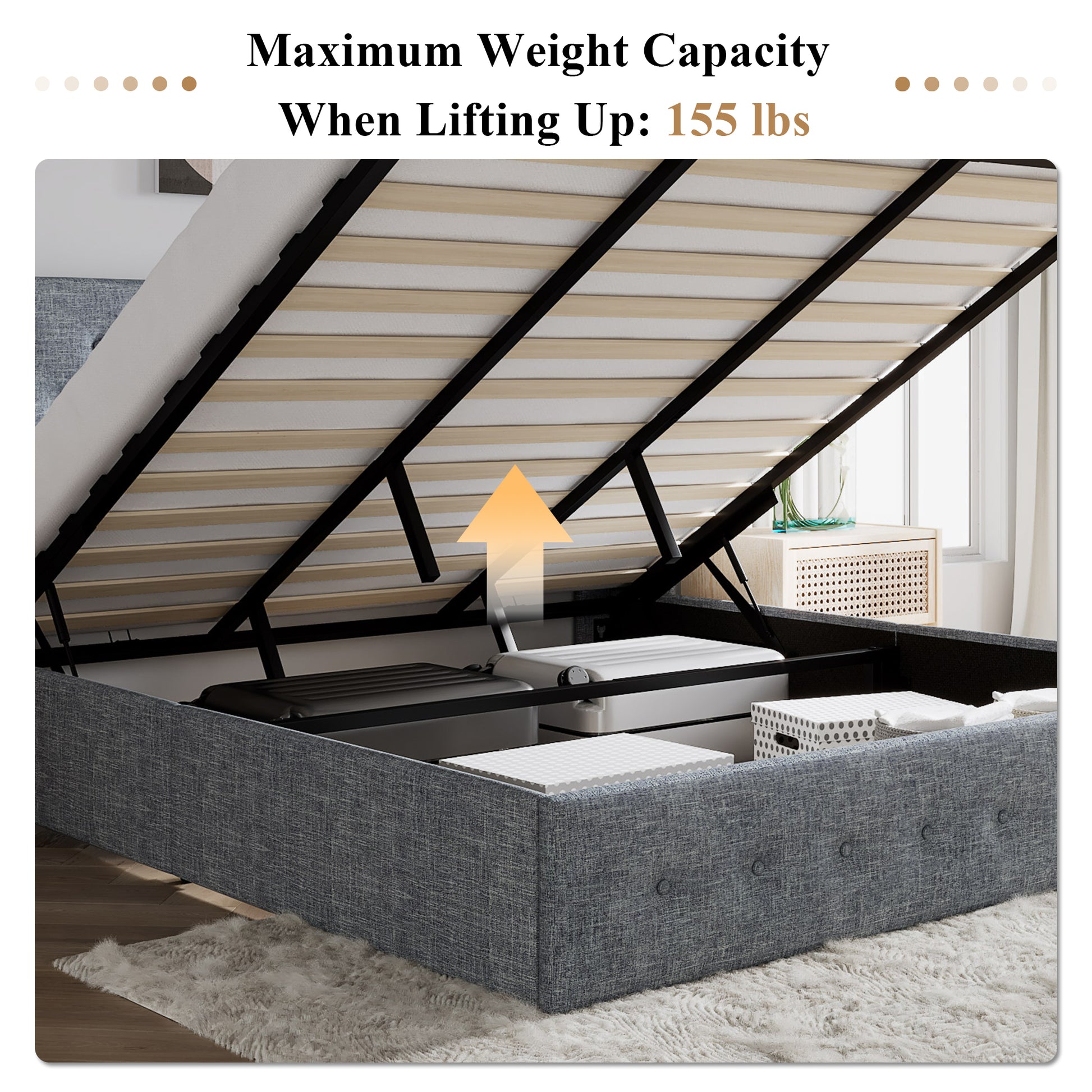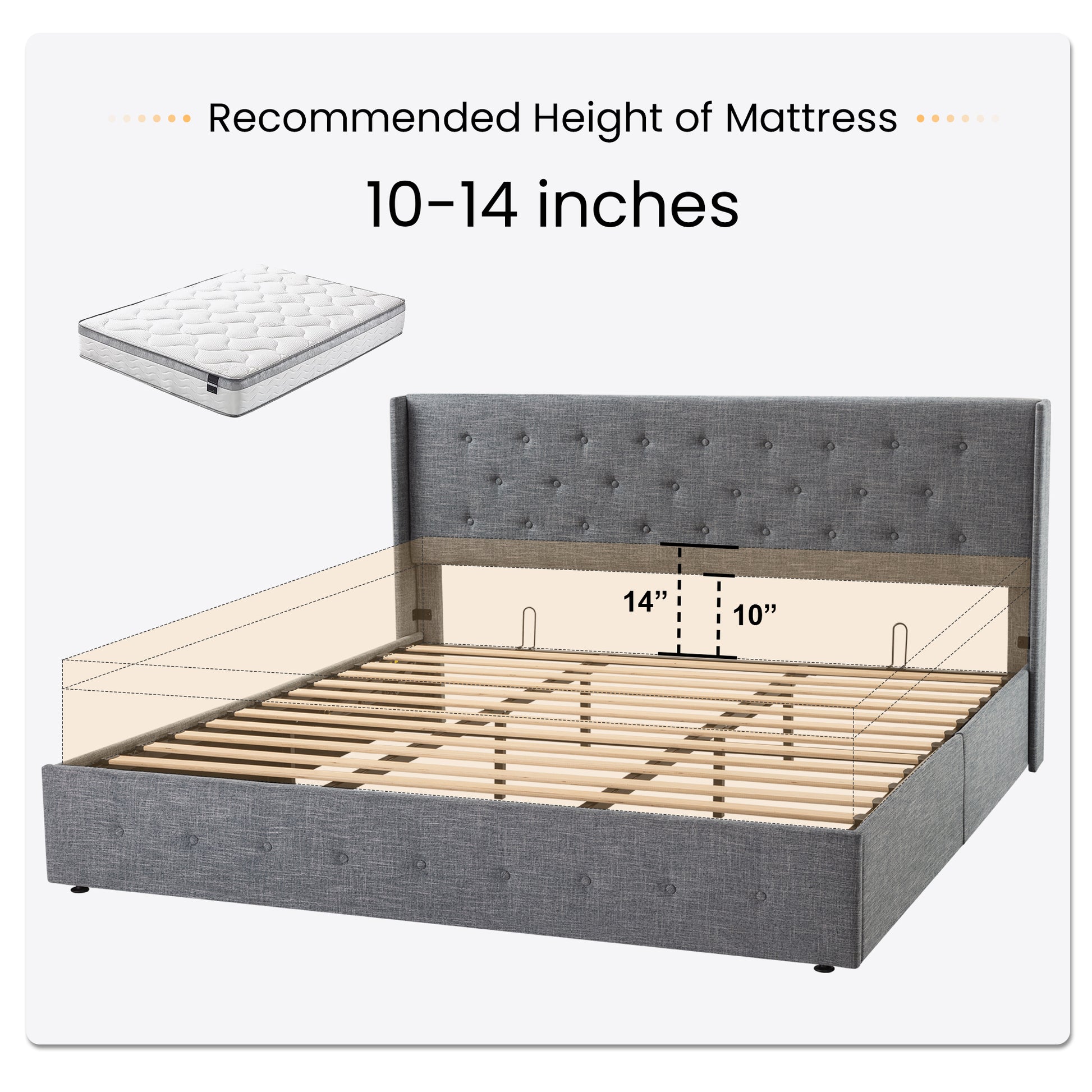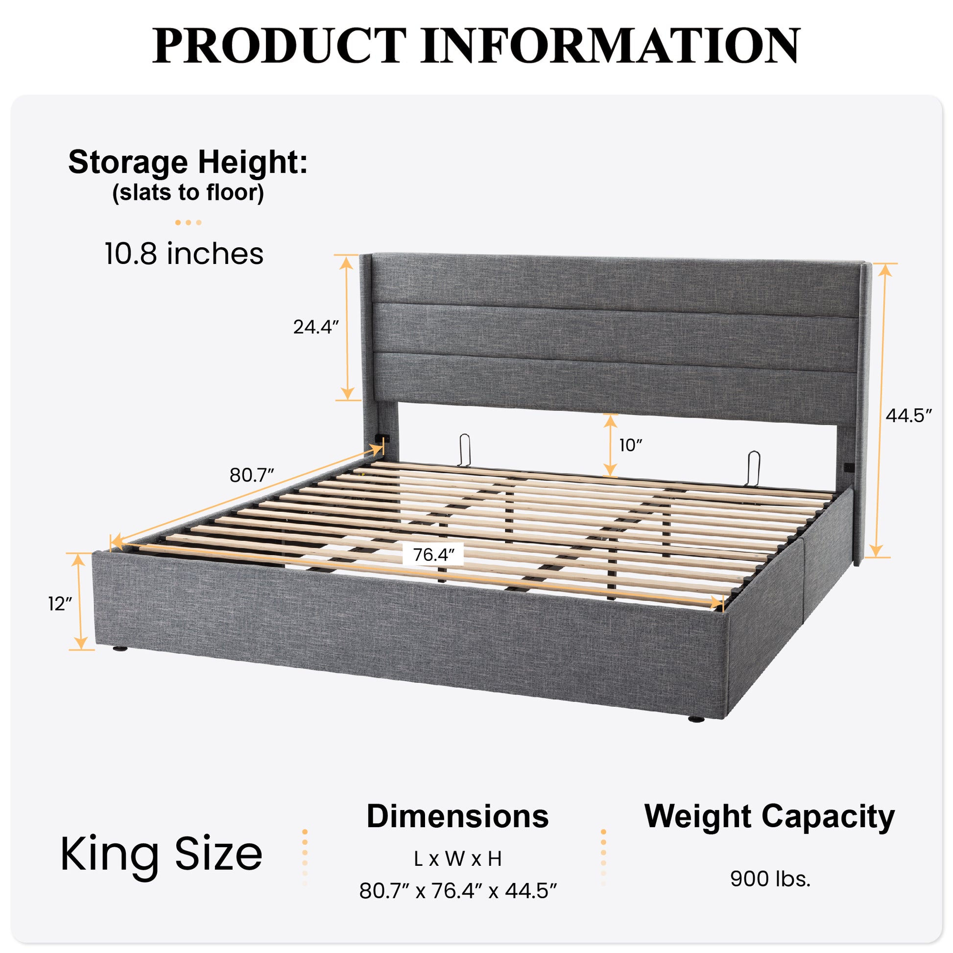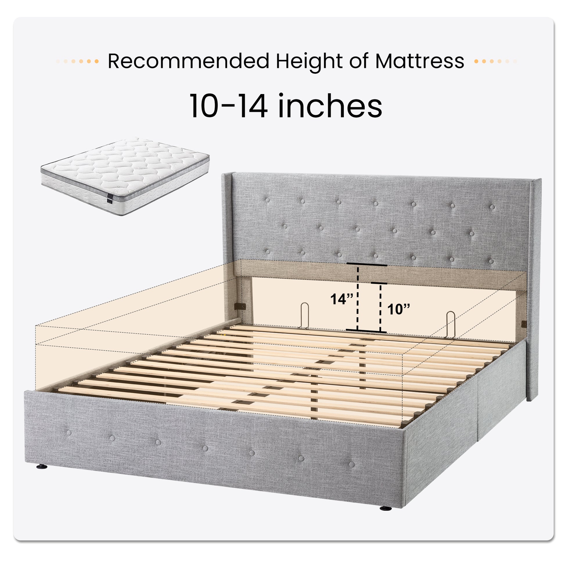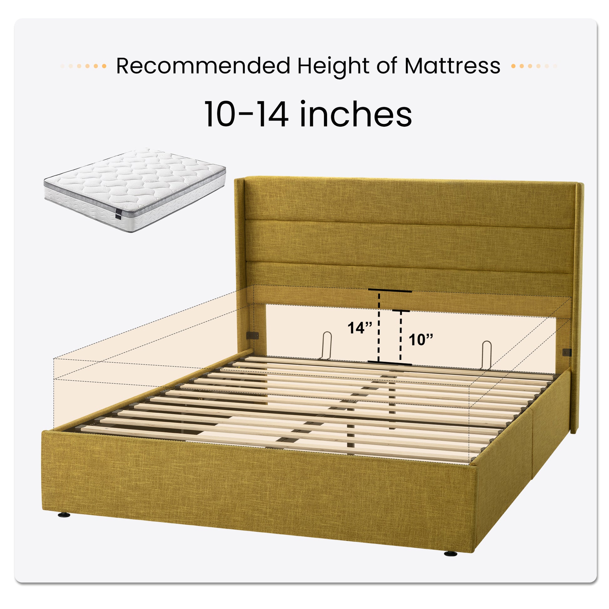 Upholstered Stoage Bed Frame with Lift Up Storage, Wingback Headboard Design