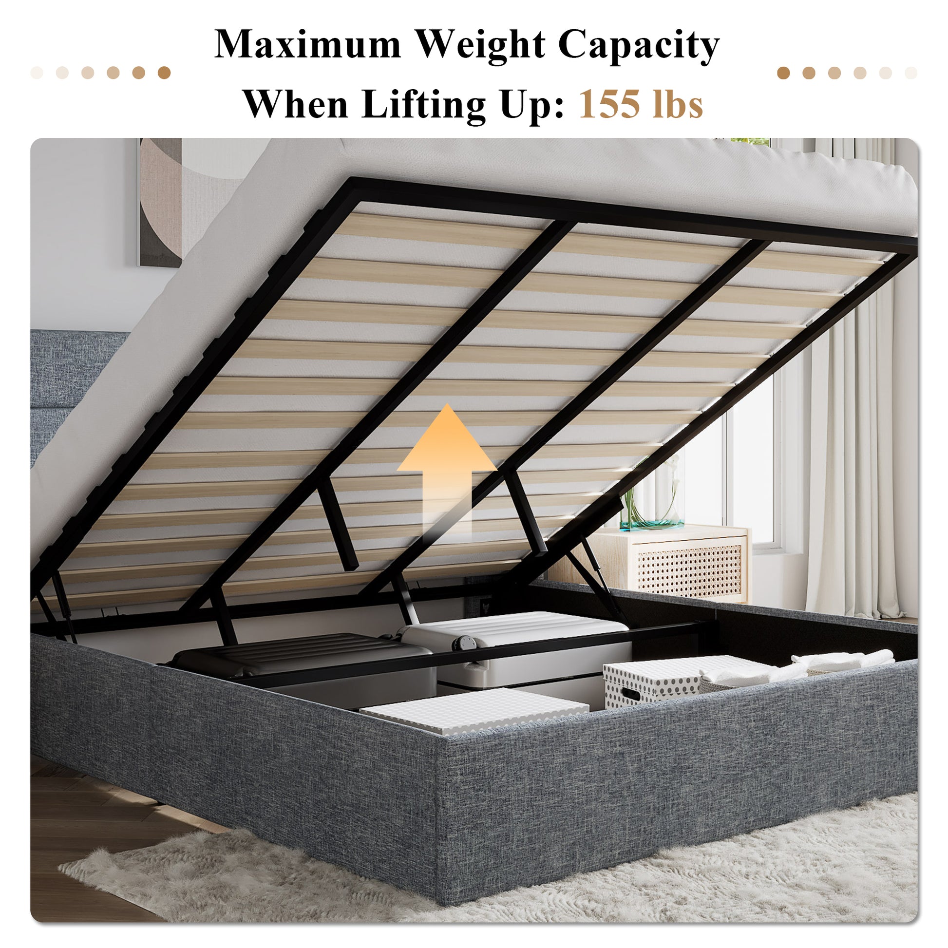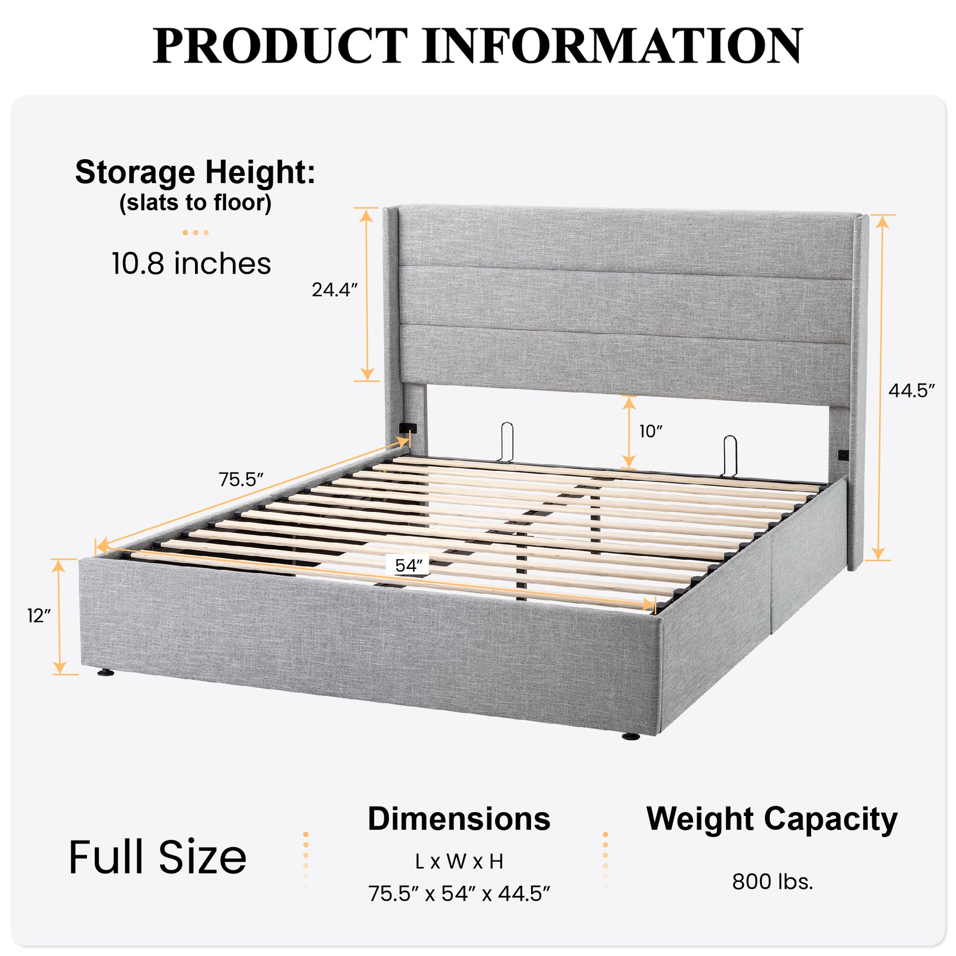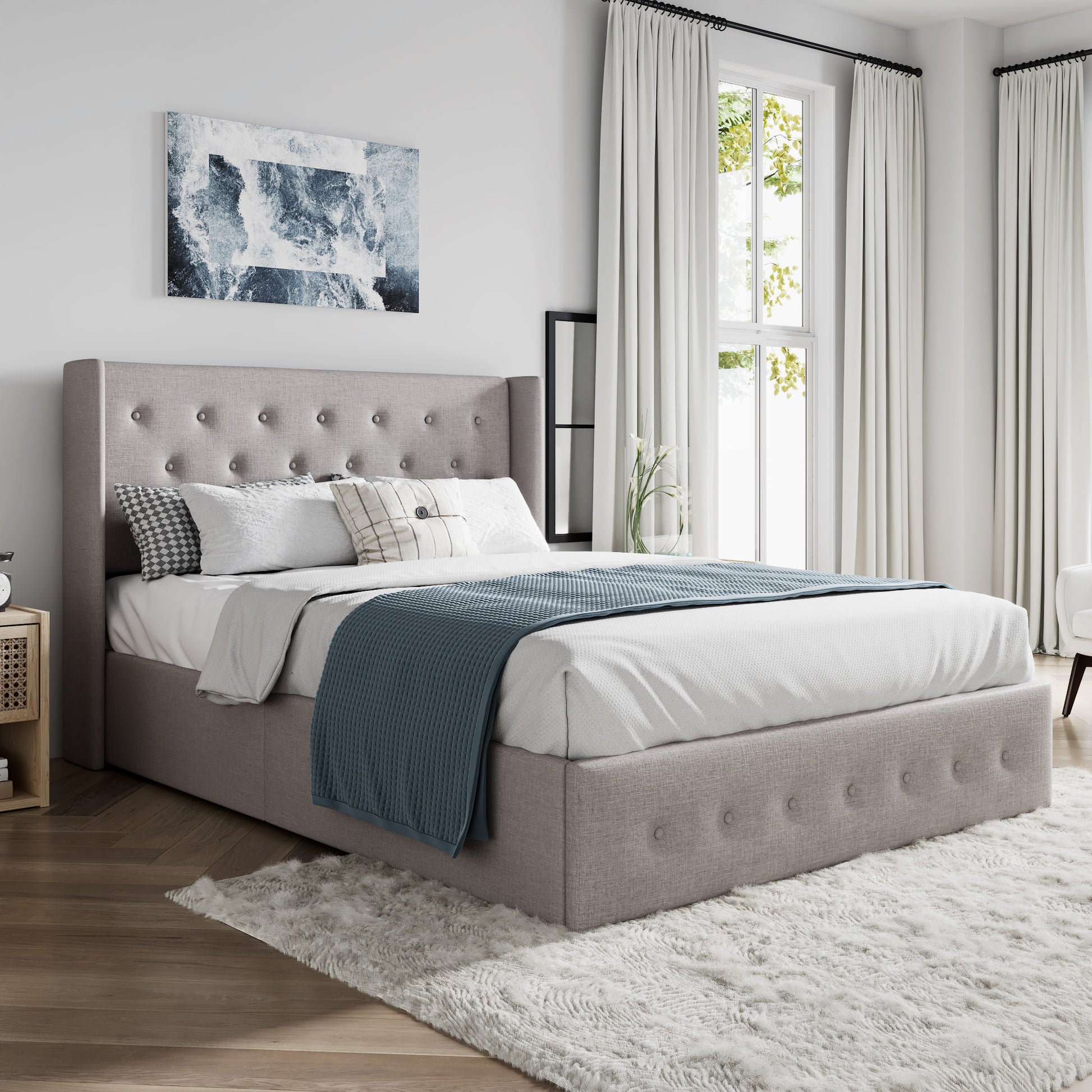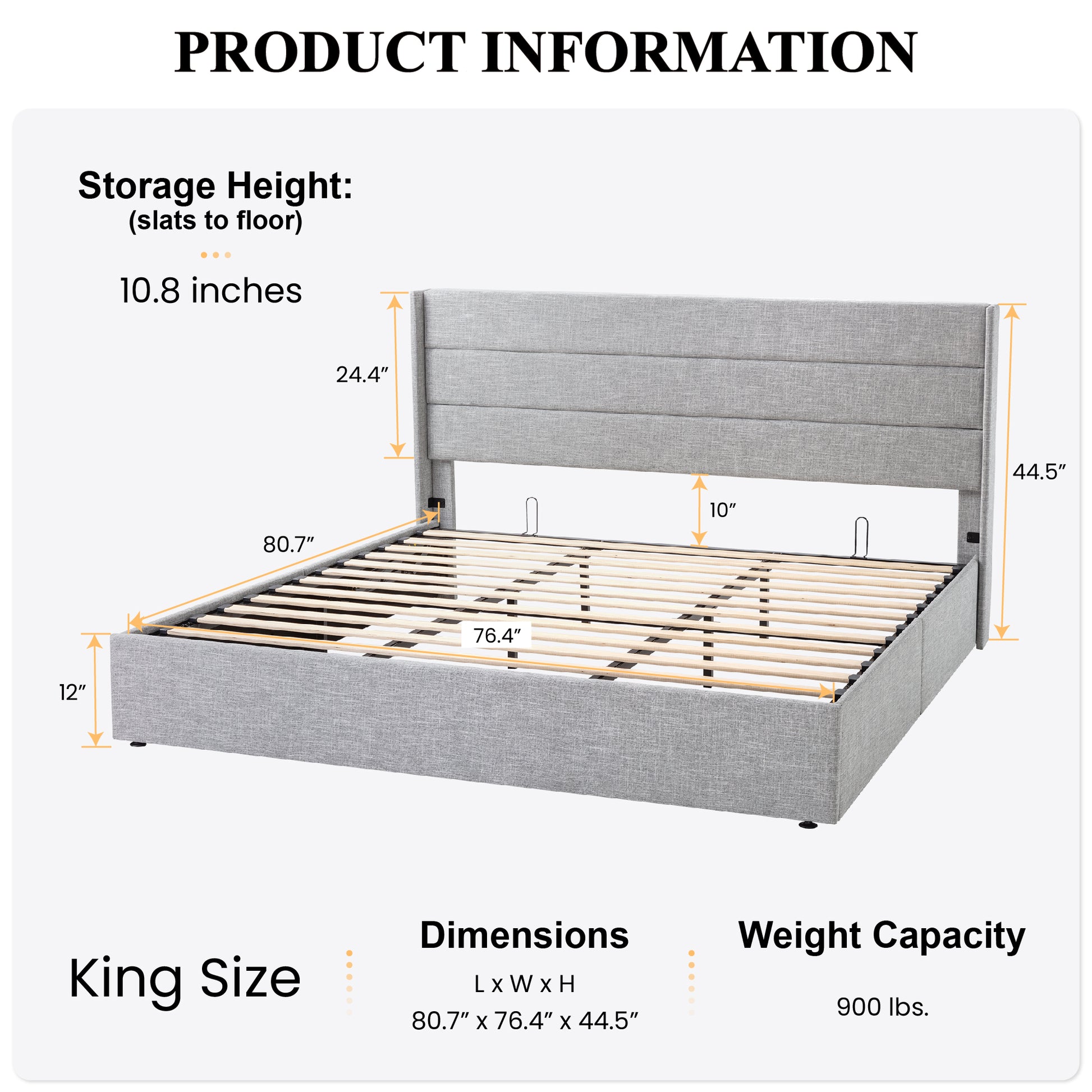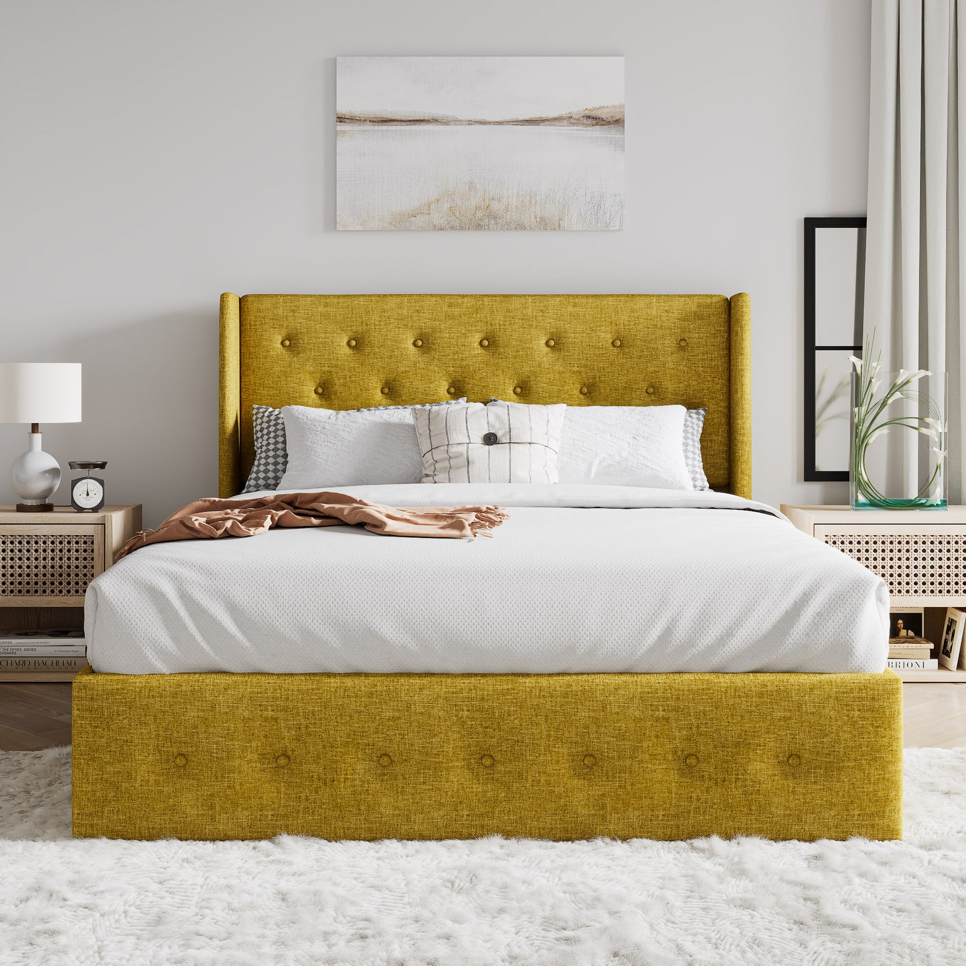 Upholstered Stoage Bed Frame with Lift Up Storage, Wingback Headboard Design