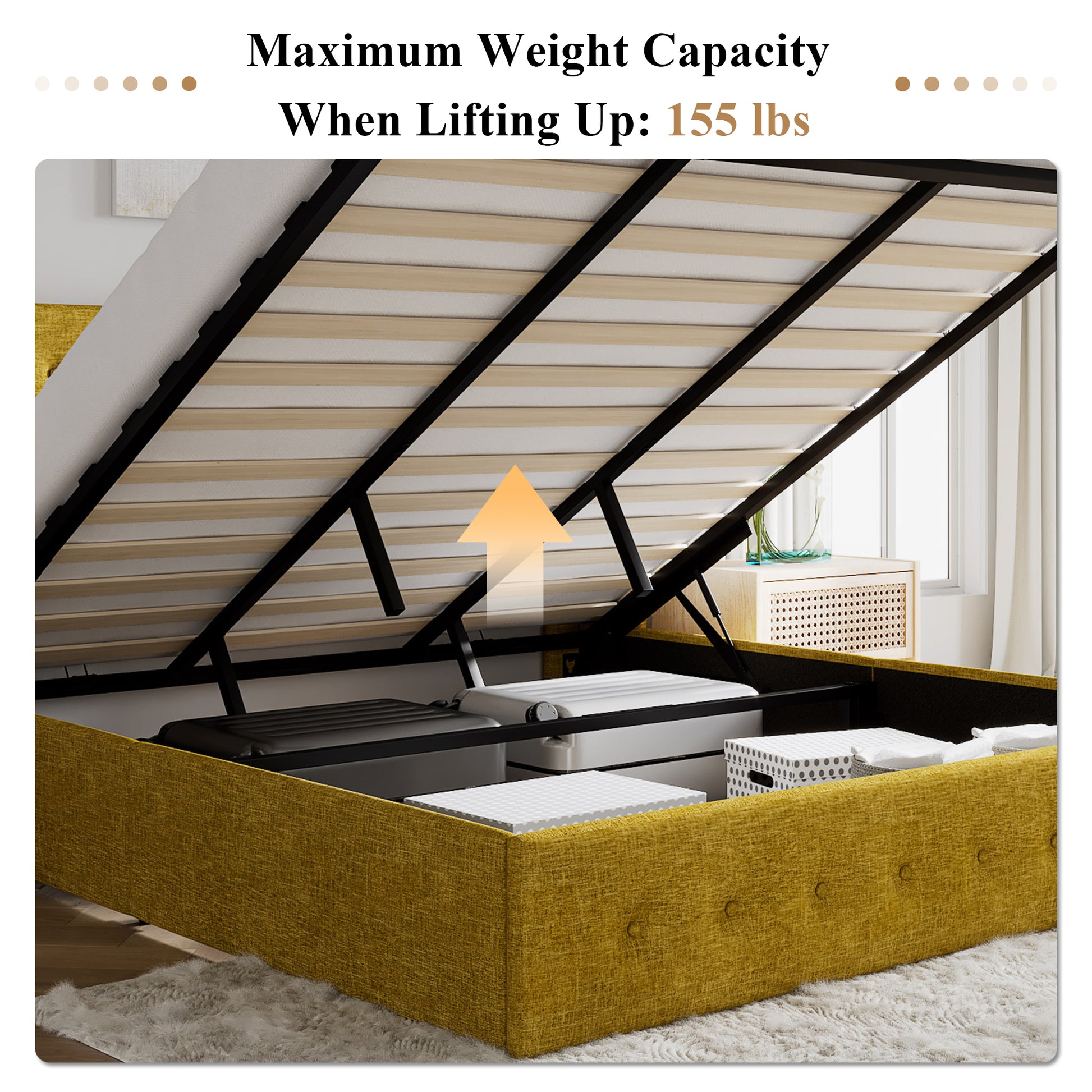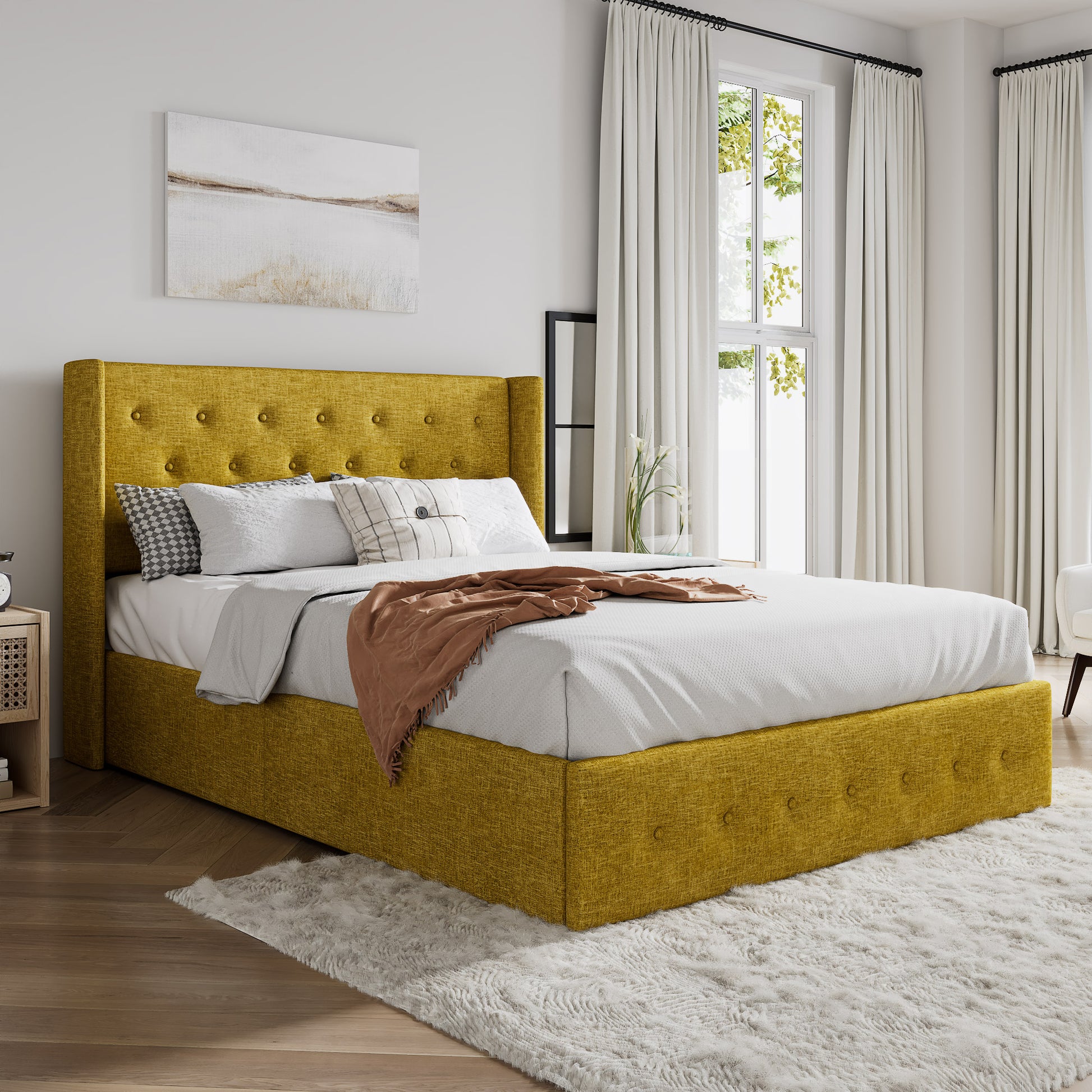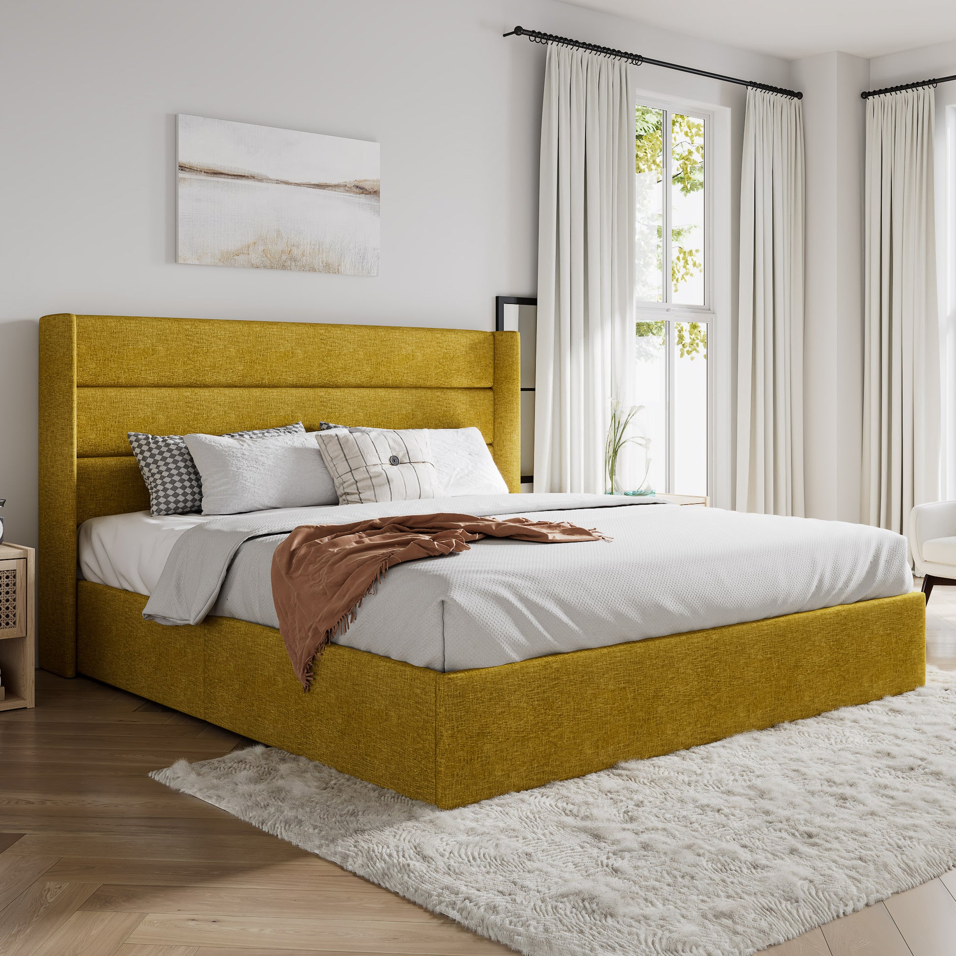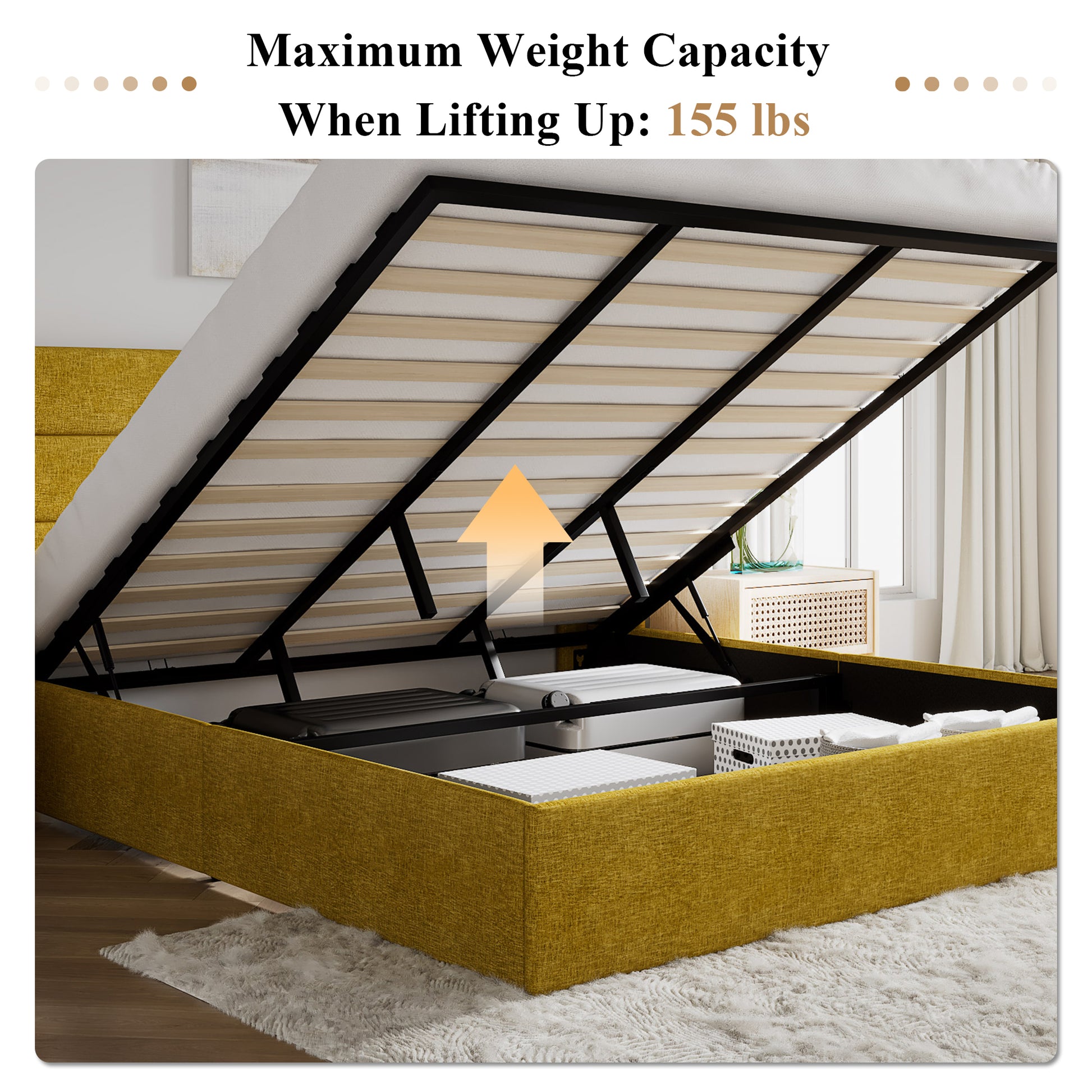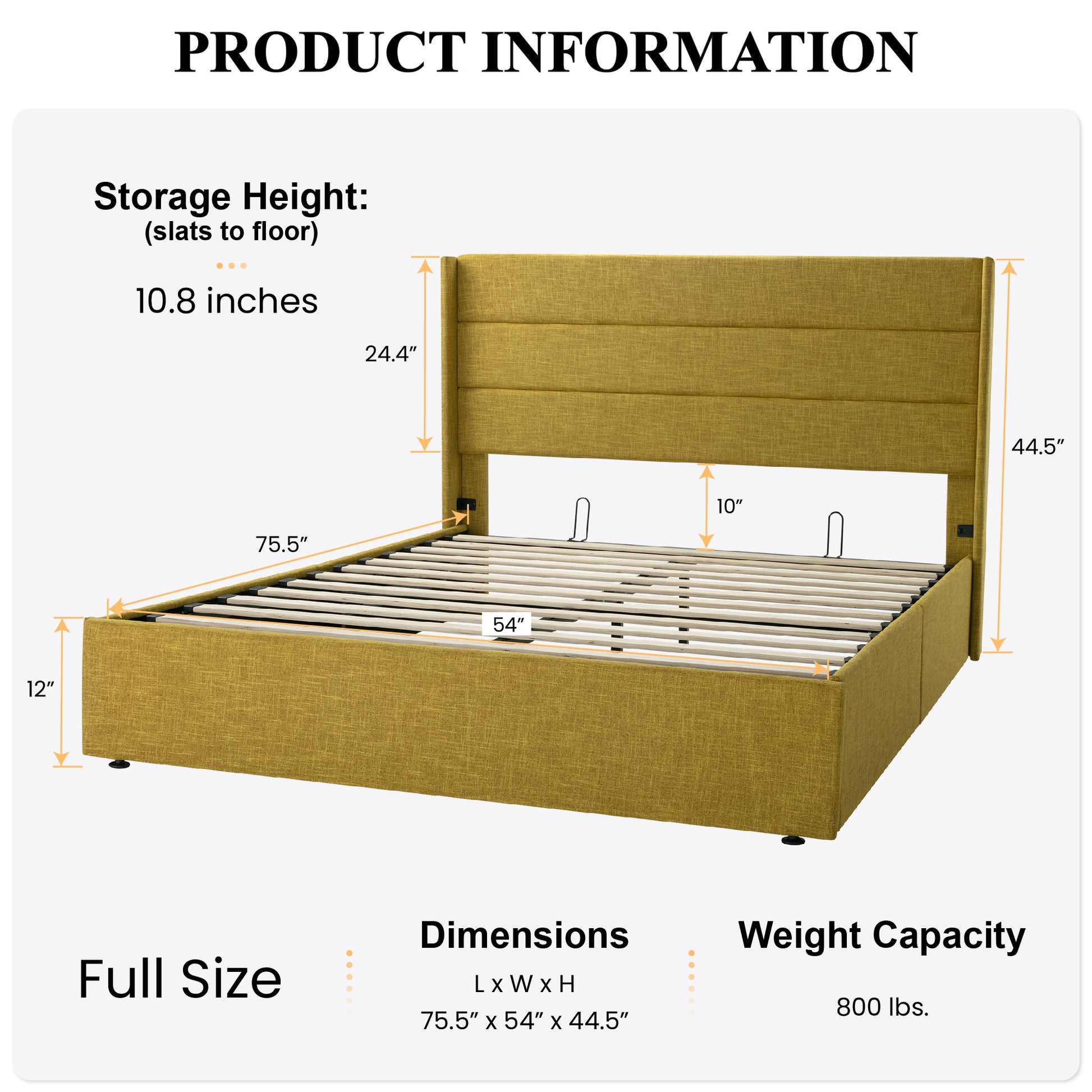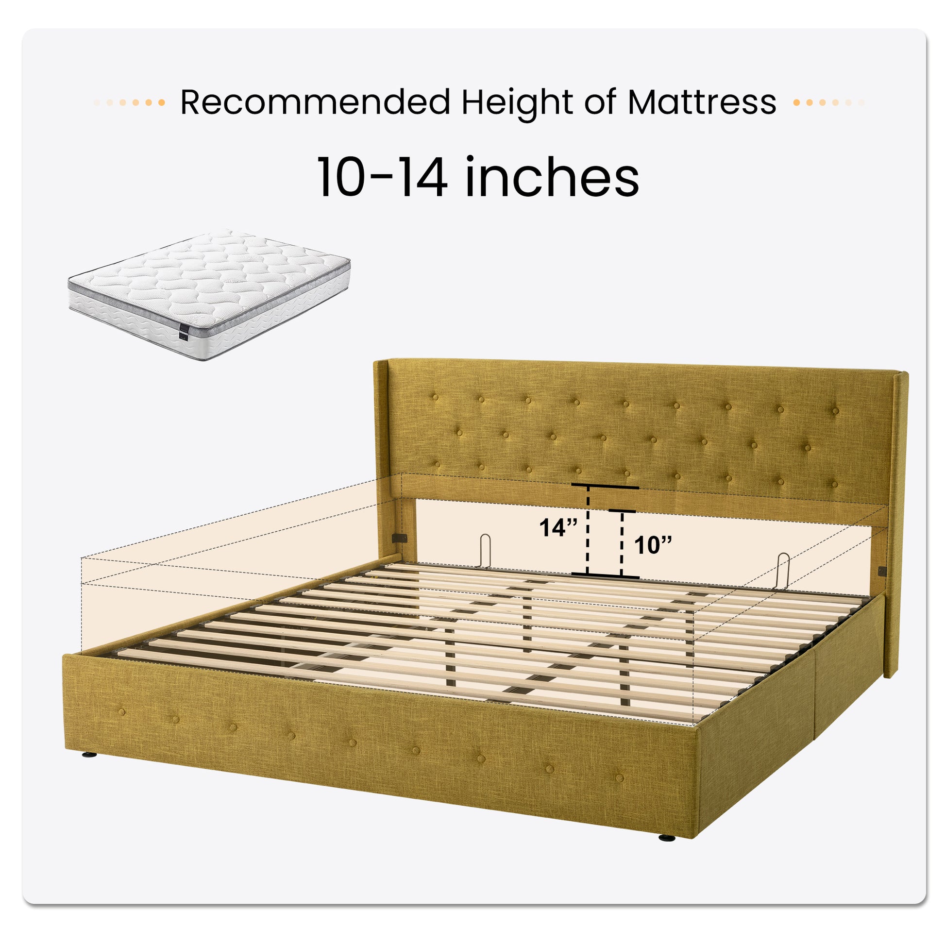 Upholstered Stoage Bed Frame with Lift Up Storage, Wingback Headboard Design