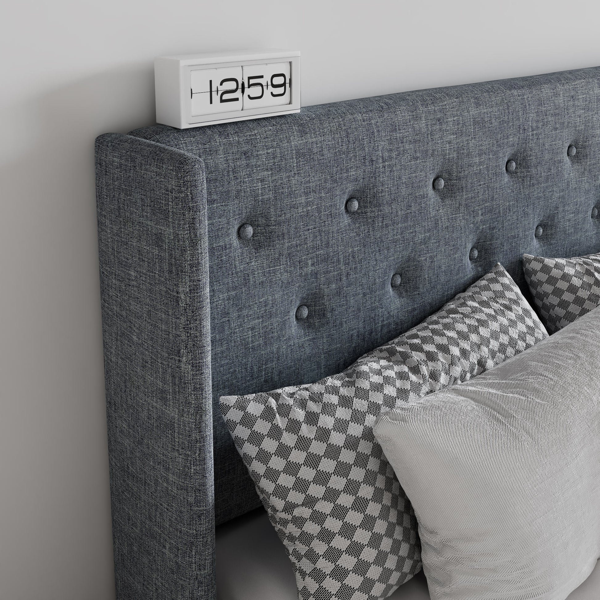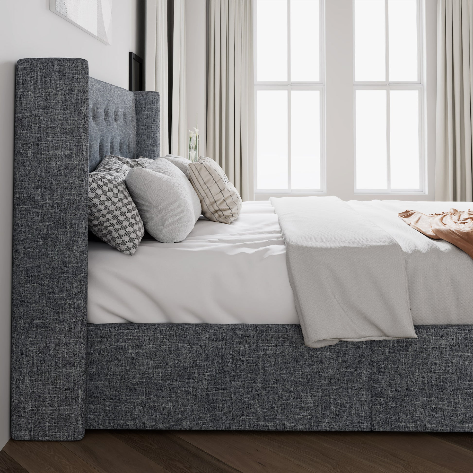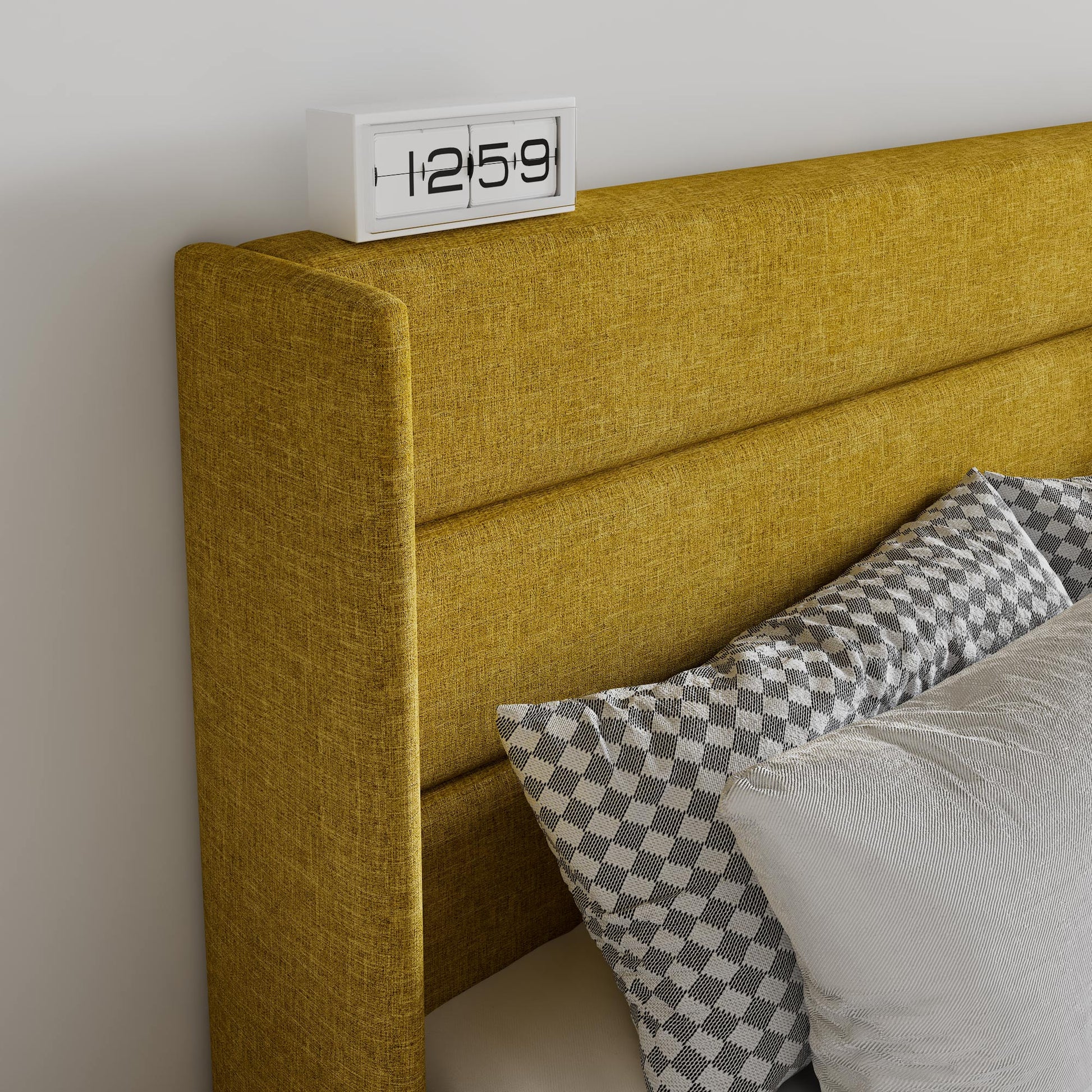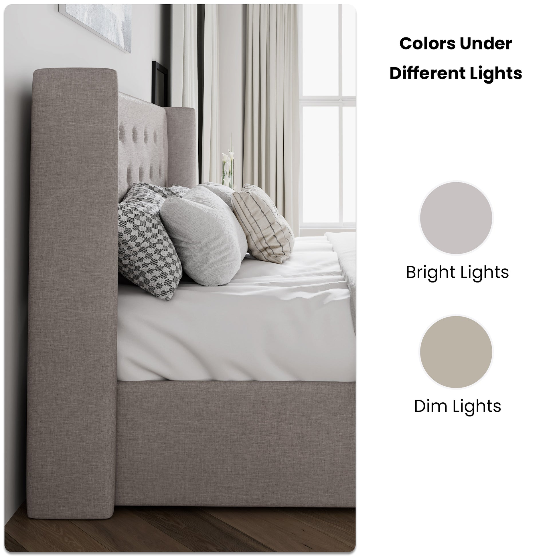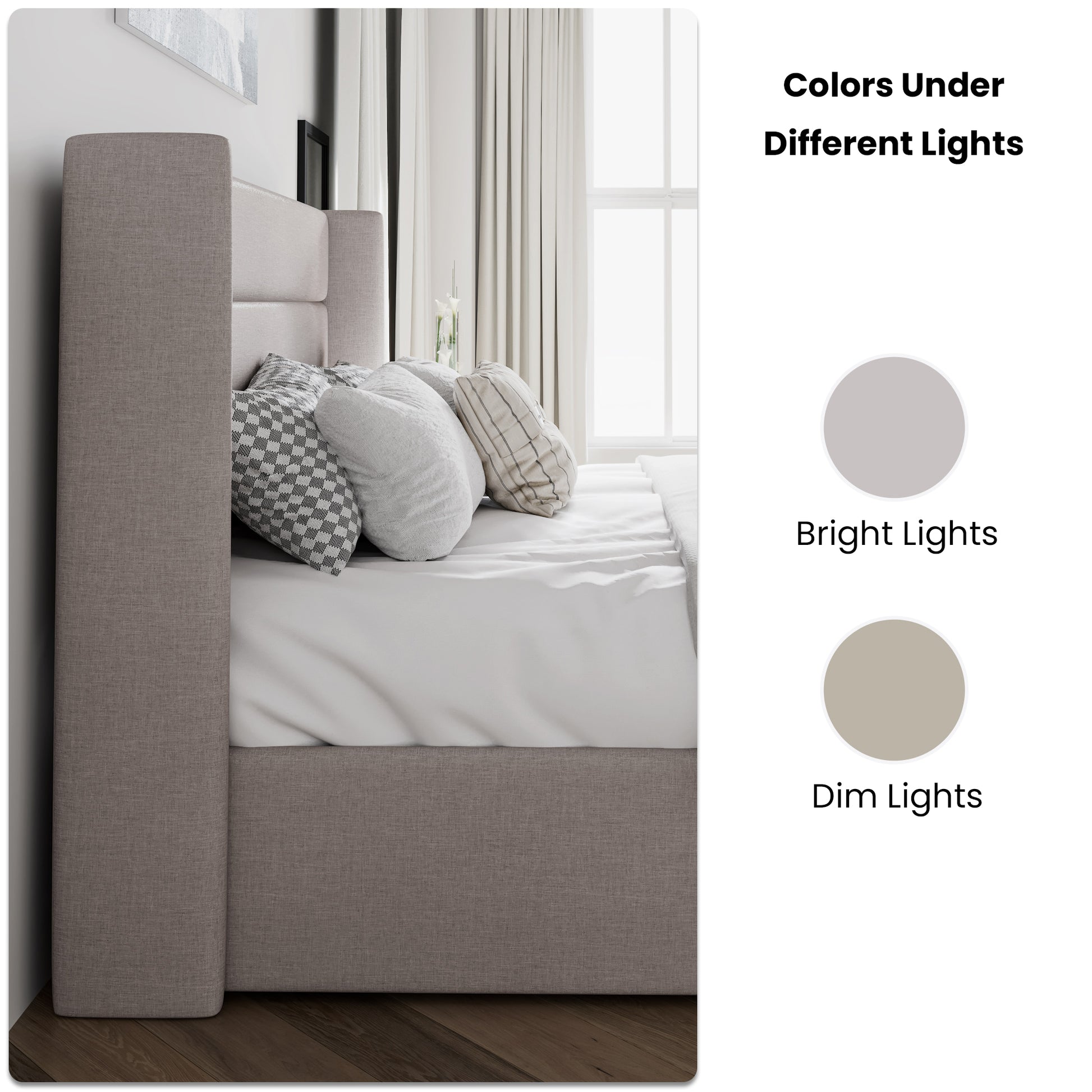 Upholstered Stoage Bed Frame with Lift Up Storage, Wingback Headboard Design