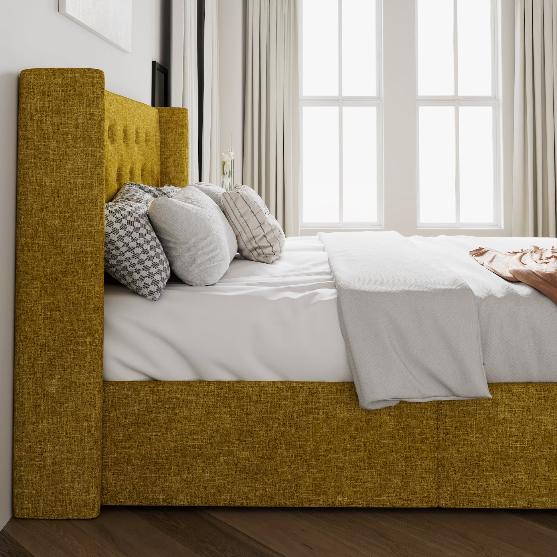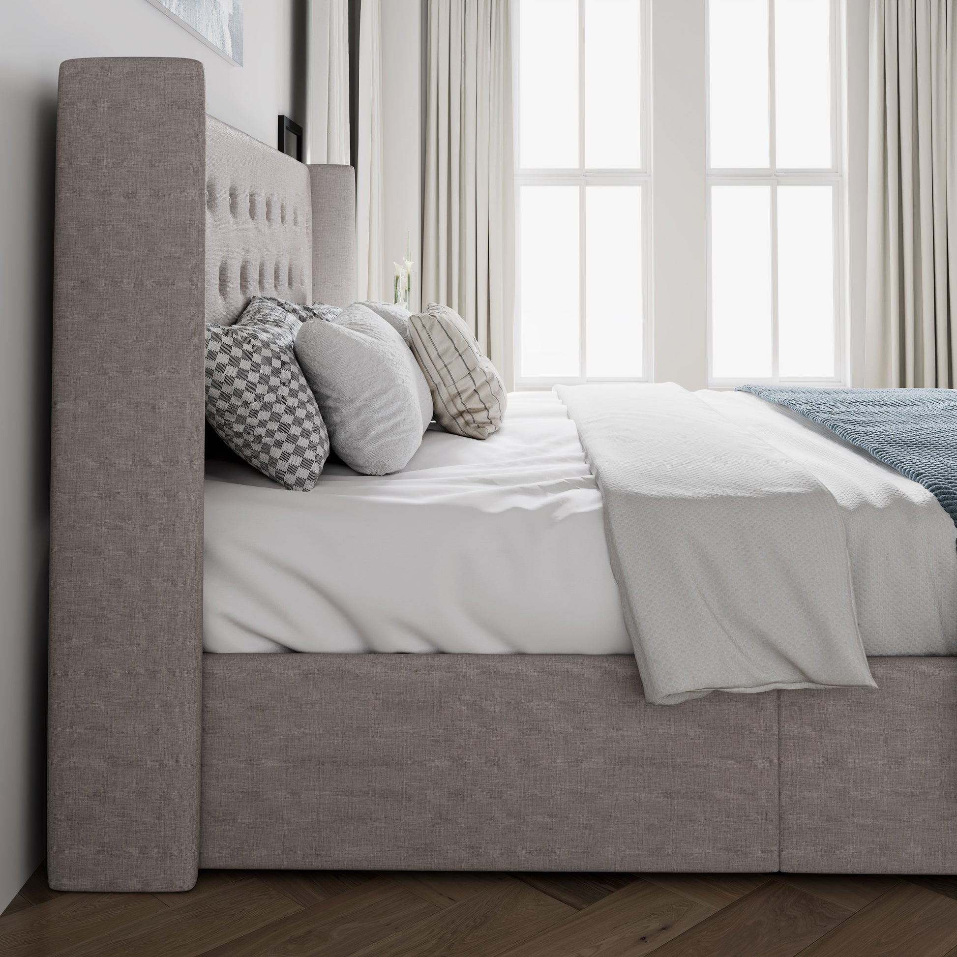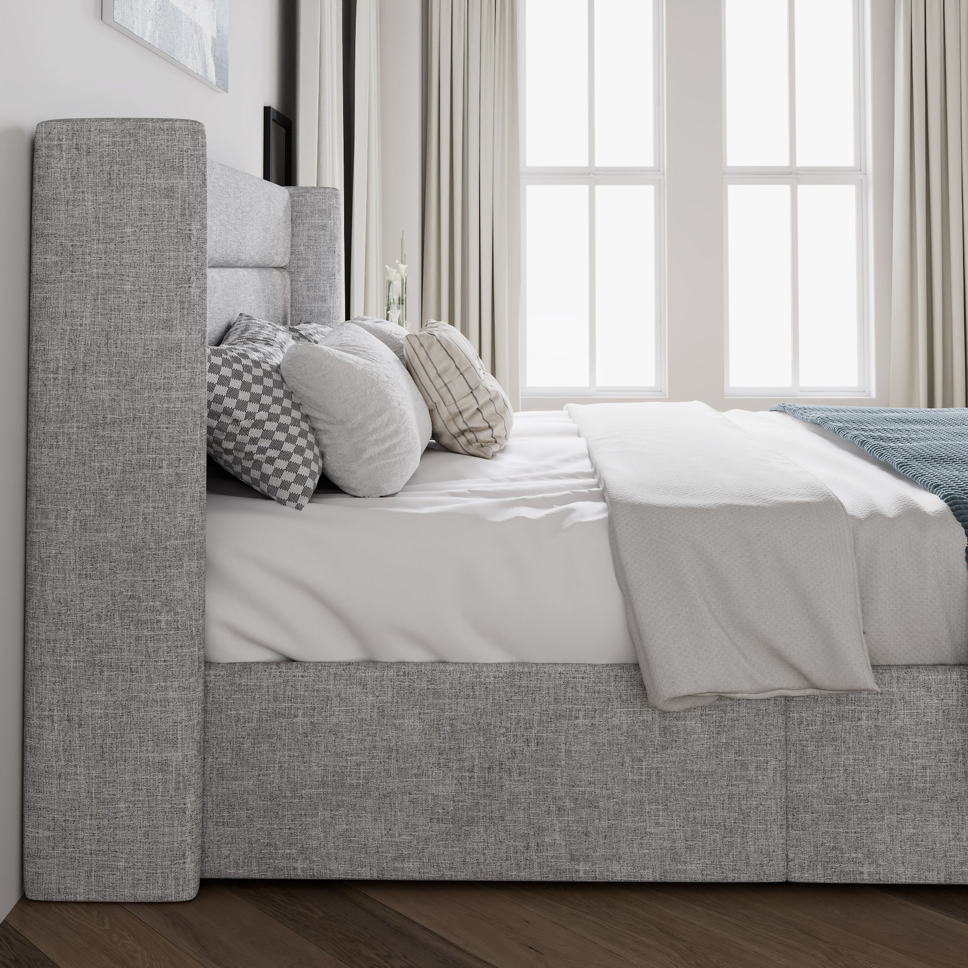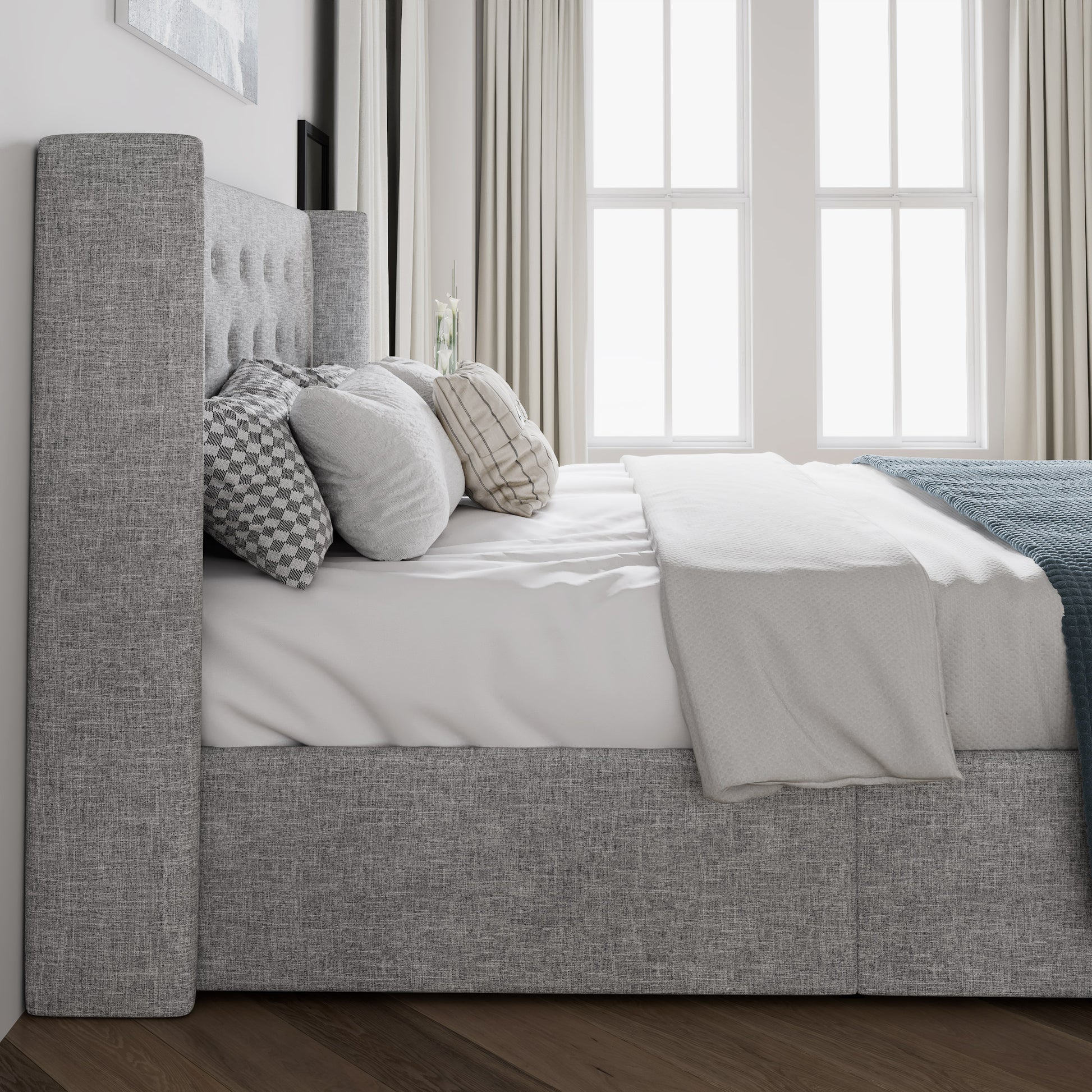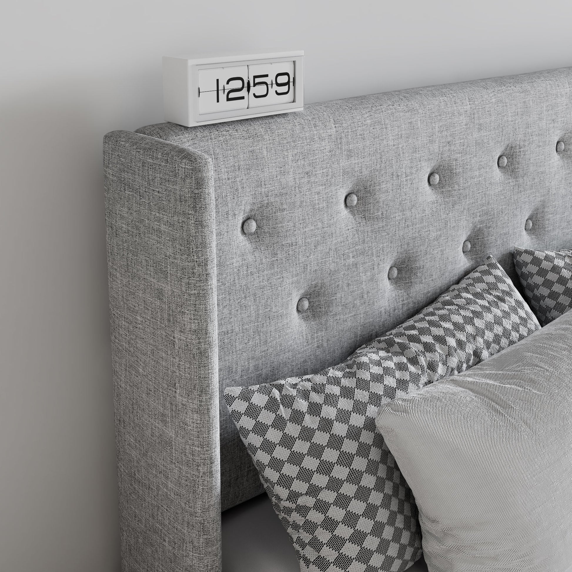 Upholstered Stoage Bed Frame with Lift Up Storage, Wingback Headboard Design
