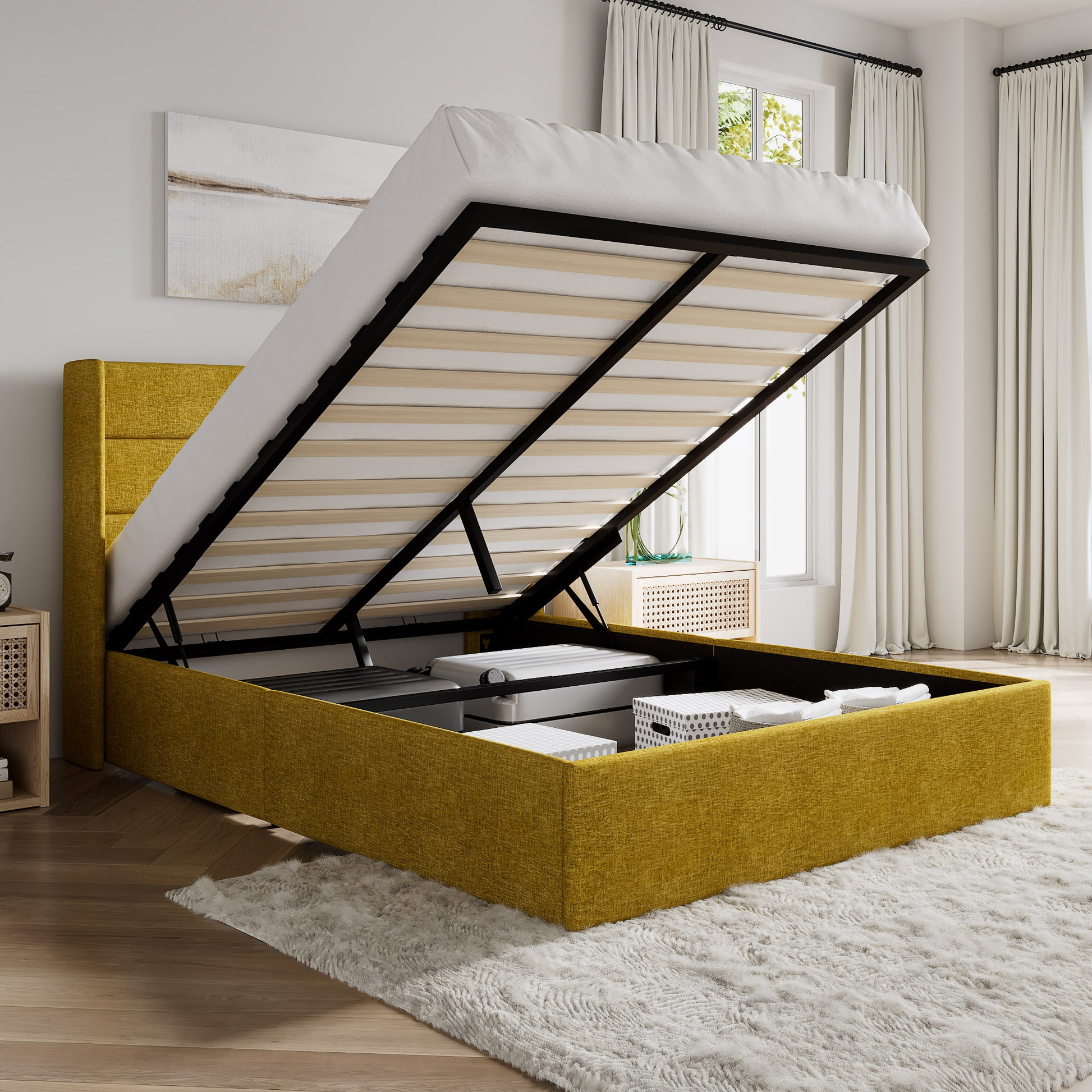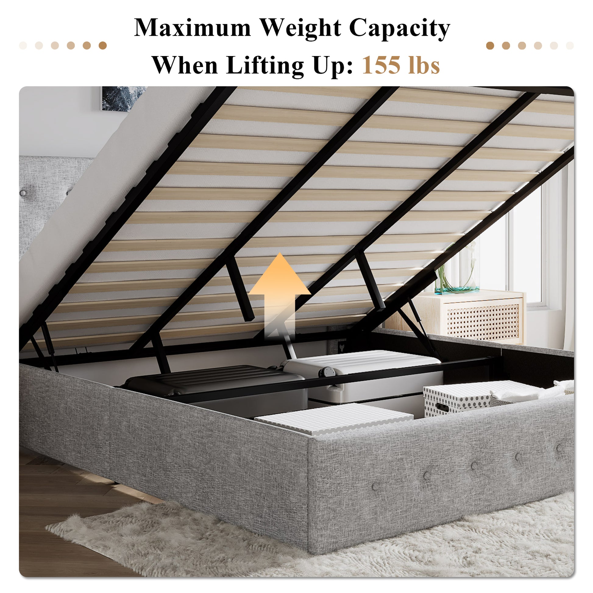Elegant Design: This Lift Up Storage Bed features an upholstered headboard to add a modern chic look to your bedroom. Its timeless design is a perfect addition to any bedroom.